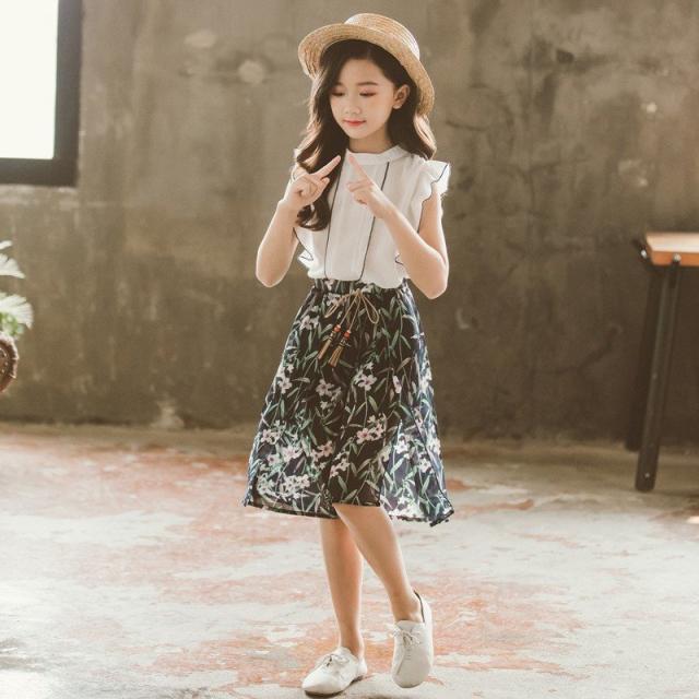 セットアップ ツーピース キッズ ジュニア 女の子 上下セット 2点セット ブラウス キュロット スカーチョ サイドスリット ノースリーブ フリル パ