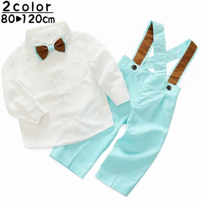 セットアップ 上下セット 3点セット 長袖シャツ ロングパンツ サスペンダー付き 蝶ネクタイ 長ズボン 子供服 キッズ フォーマル トップス ボトムス