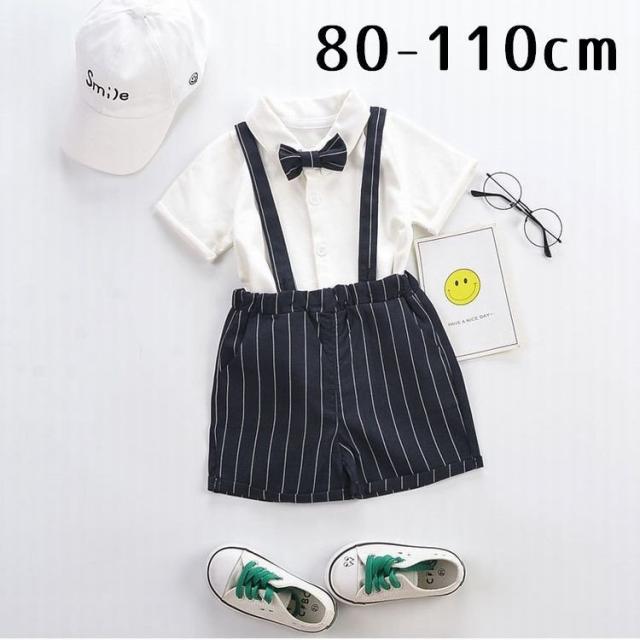 セットアップ 上下セット 3点セット シャツ 半袖 短パン 半ズボン 男の子 女の子 ストライプ 蝶ネクタイ