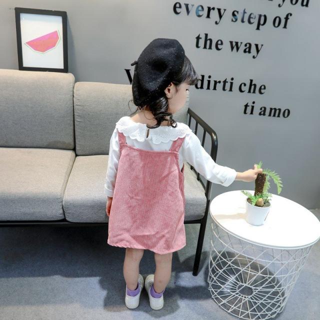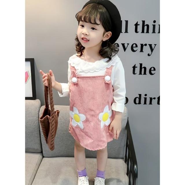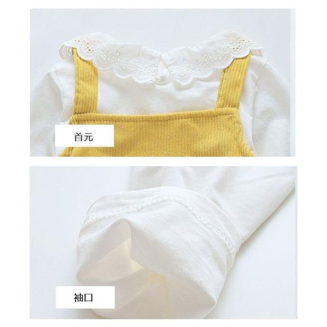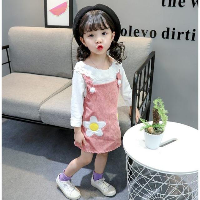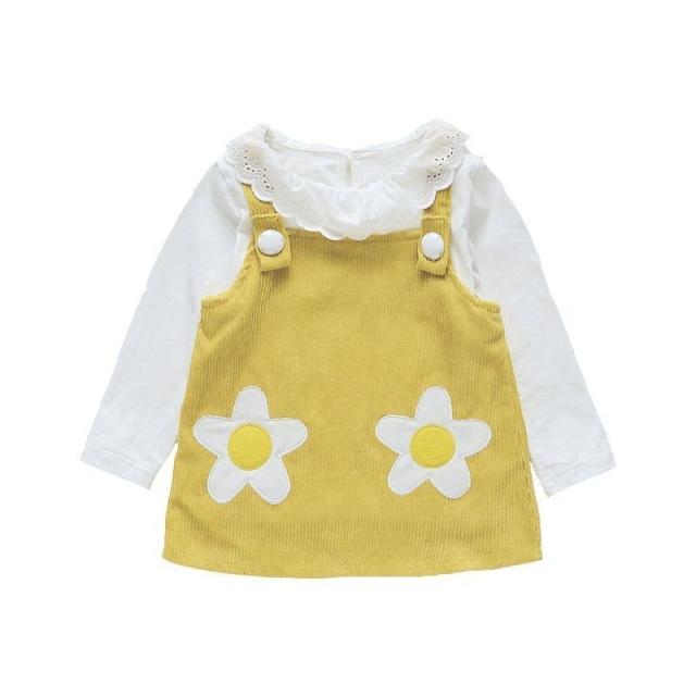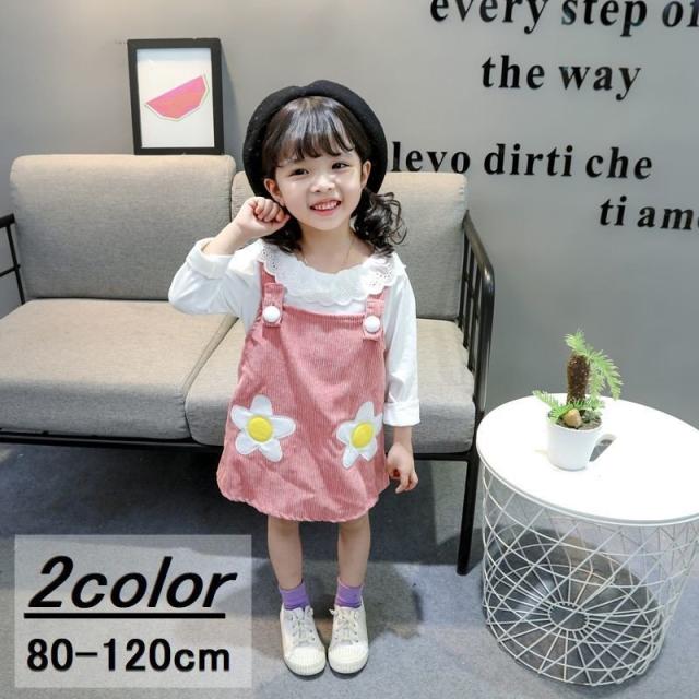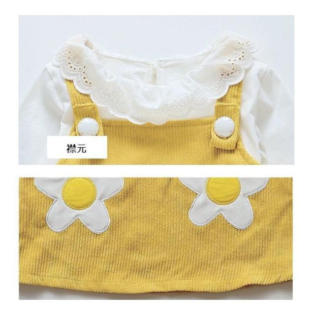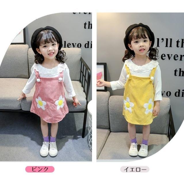 セットアップ 子供用 キッズ 女の子 スカート トップス ブラウス 長袖 フリル 花 オーバーオール ジャンパースカート コーデュロイ セット商品 黄