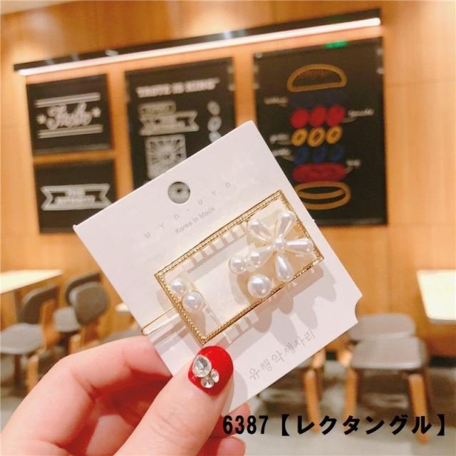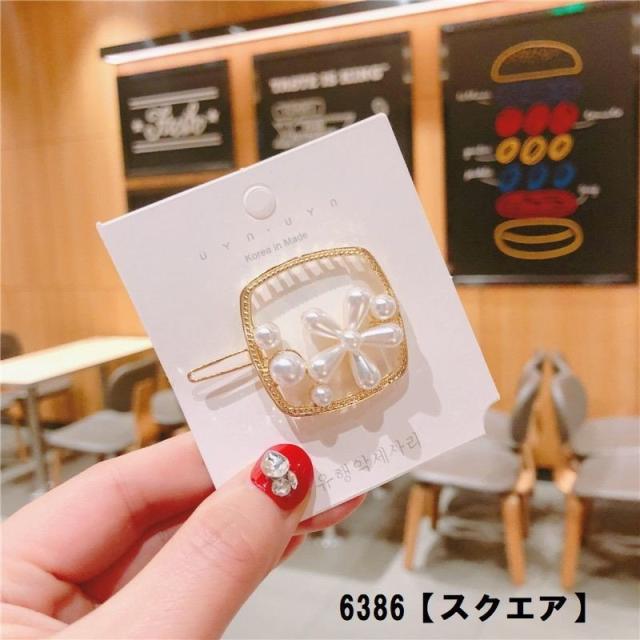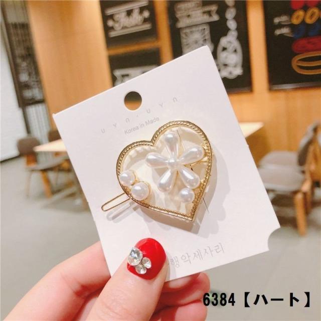 ヘアクリップ フェイクパール フラワー ヘアピン ヘアアクセサリー レディース エレガント おしゃれ ゴールドカラー 幾何学 ハート 丸 三角