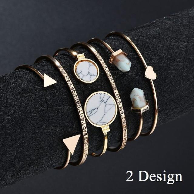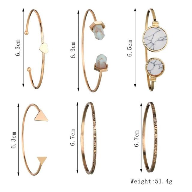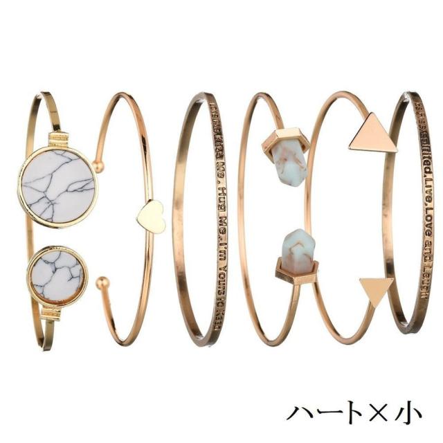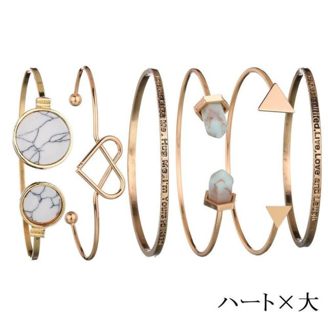 バングル C型 ブレスレット レディース 女性 女子 女の子 アクセサリー ファッション小物 6点セット 文字入れ ロゴ ハート 三角 大理石風 ゴー