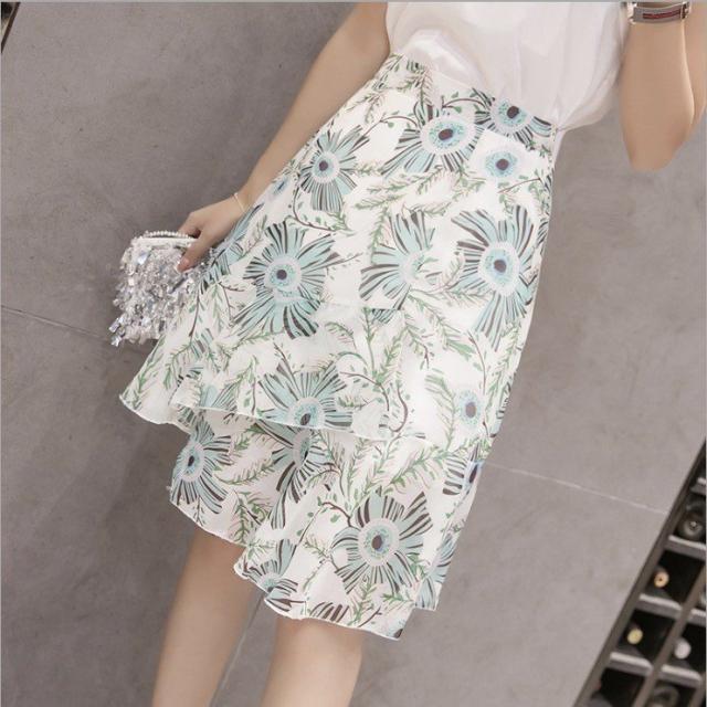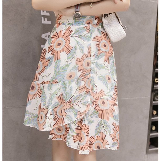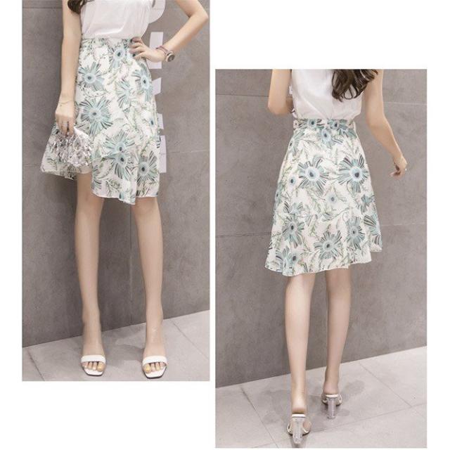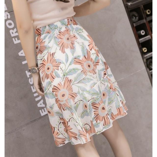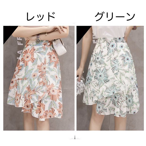 スカート レディース 秋 ボトムス フレア シフォン ブルーム フィッシュテール 花柄 ふんわりシルエット ガーリー フェミニン