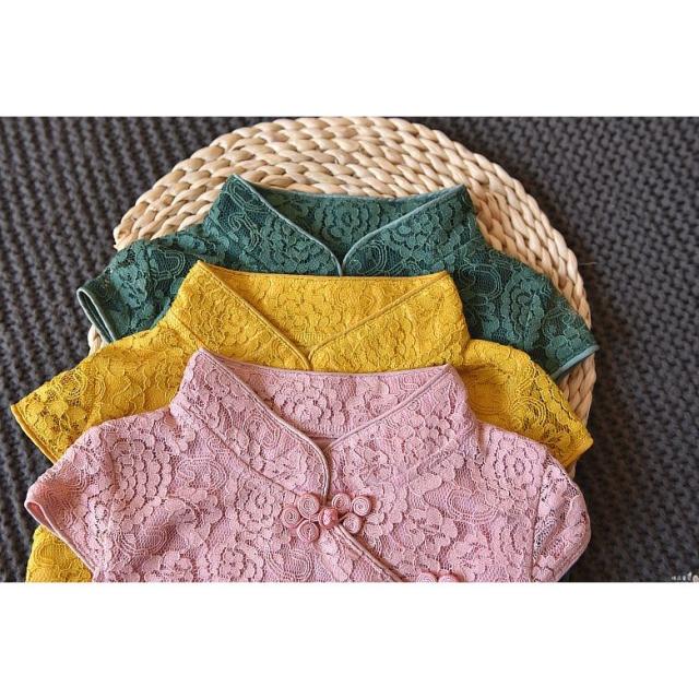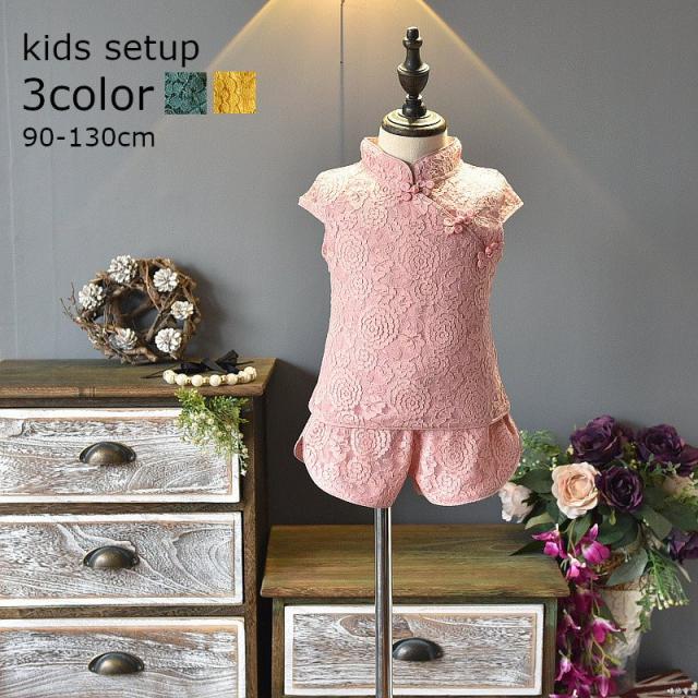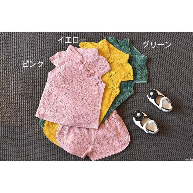 上下セット セットアップ キッズ 半袖 ショートパンツ 2点セット 民族衣装風 刺繍 レース かわいい 子供服 夏服