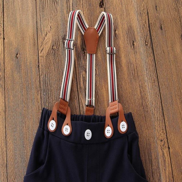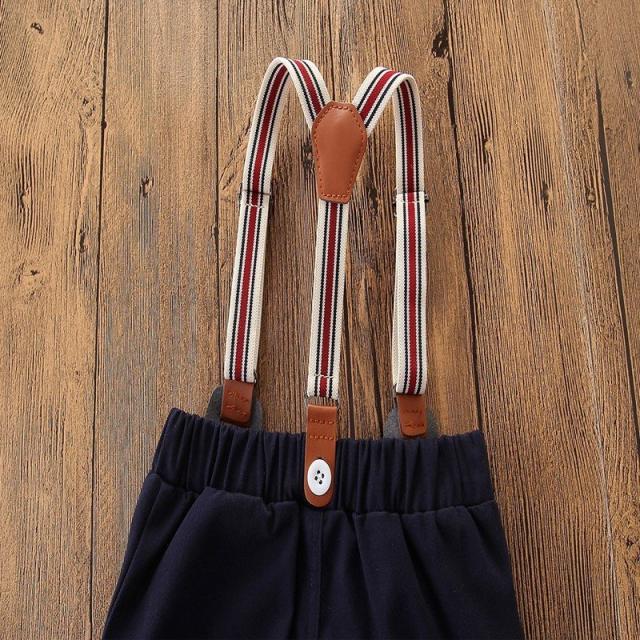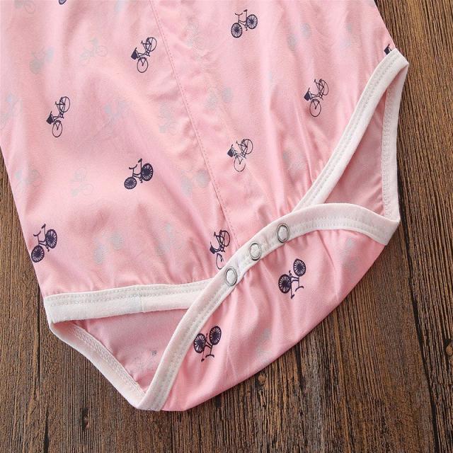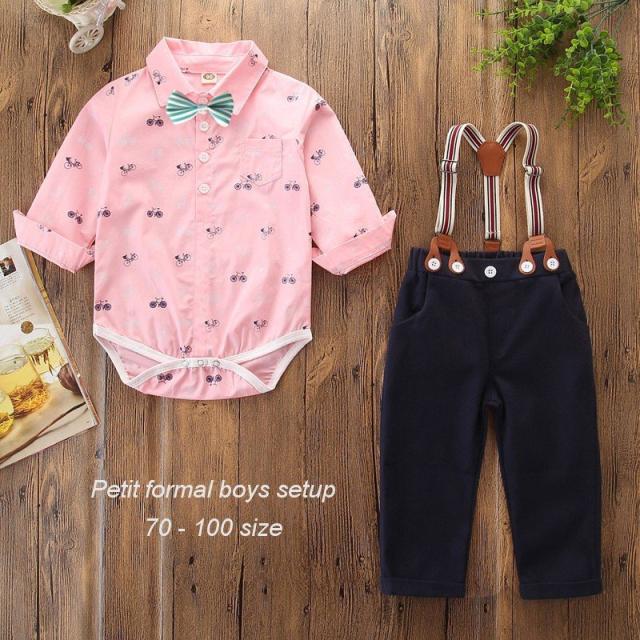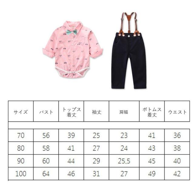 セットアップ ロンパース シャツ パンツ サスペンダー サス付き 蝶ネクタイ リボン 3点セット 長袖 長ズボン ベビー 男の子 自転車 柄 ピンク