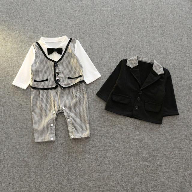 スーツ ベビー キッズ 子供服 ベビー服 男の子 ロンパース 長袖 フォーマル セット セットアップ ジャケット ベスト 蝶ネクタイ 結婚式 入園式