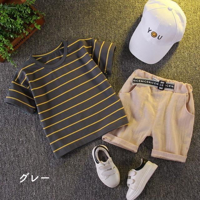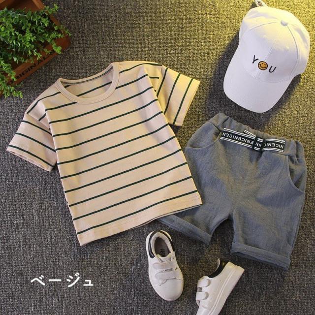セットアップ 上下セット 半袖Tシャツ 半ズボン キッズ 子供服 女の子 男の子 夏服 春服 ショートパンツ ゴムウエスト ボーダー柄 カジュアル か