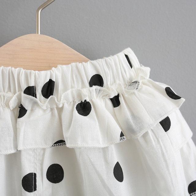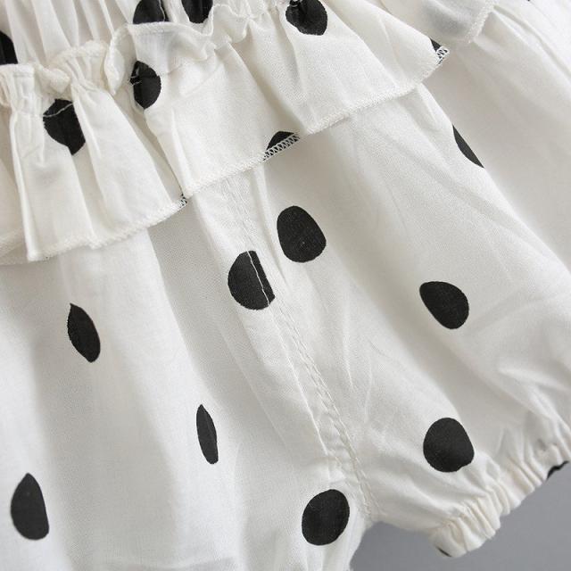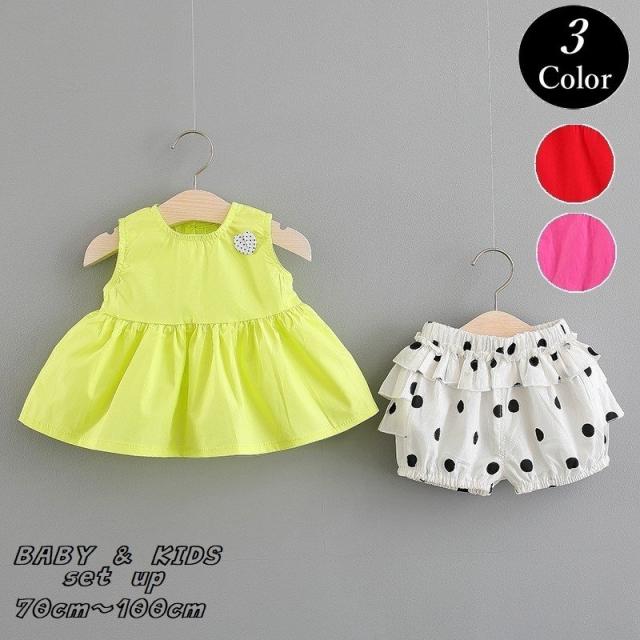 セットアップ ベビー キッズ ワンピース フレア ラウンドネック ノースリーブ ショートパンツ ドット フリル 子供服