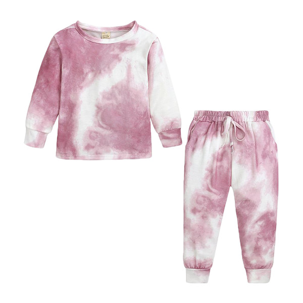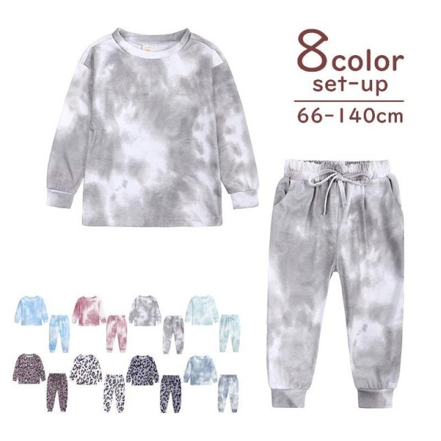 セットアップ 上下セット トレーナー ロングパンツ キッズ 子供服 女の子 男の子 長袖 タイダイ柄 プルオーバー ラウンドネック スウェット 秋 冬