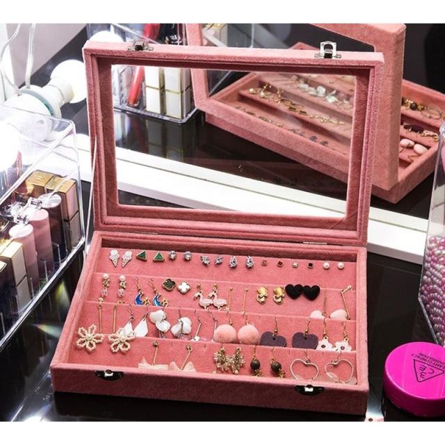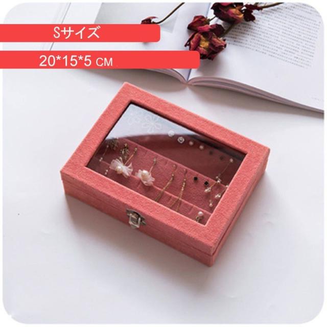 アクセサリーケース イヤリング収納 ピアス収納 収納ケース 木製 大容量 たっぷり入る 透明フタつき 蓋 イヤーアクセサリーケース ジュエリー入れ カ