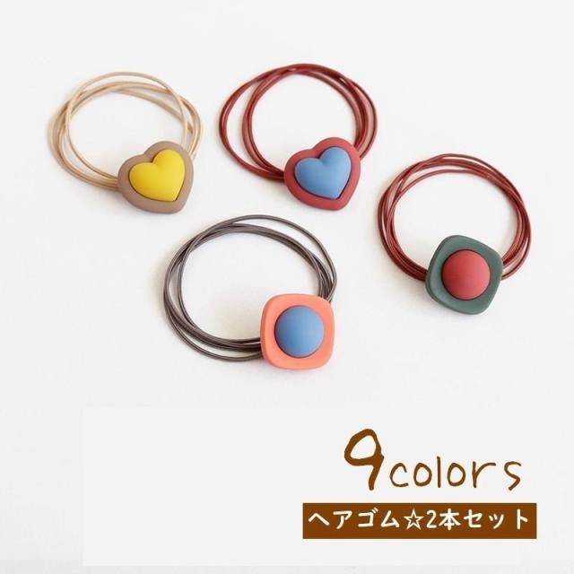ヘアゴム 2個セット ハート サークル スクエア 円 丸 四角 ヘアアクセサリー レディース かわいい おしゃれ