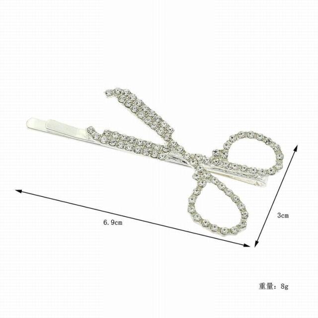 ヘアピン ヘアクリップ レディース ヘアアクセサリー 髪留め 髪飾り ピン留め シルバーカラー ラインストーン ハサミ はさみ シザー ヘアアレンジ