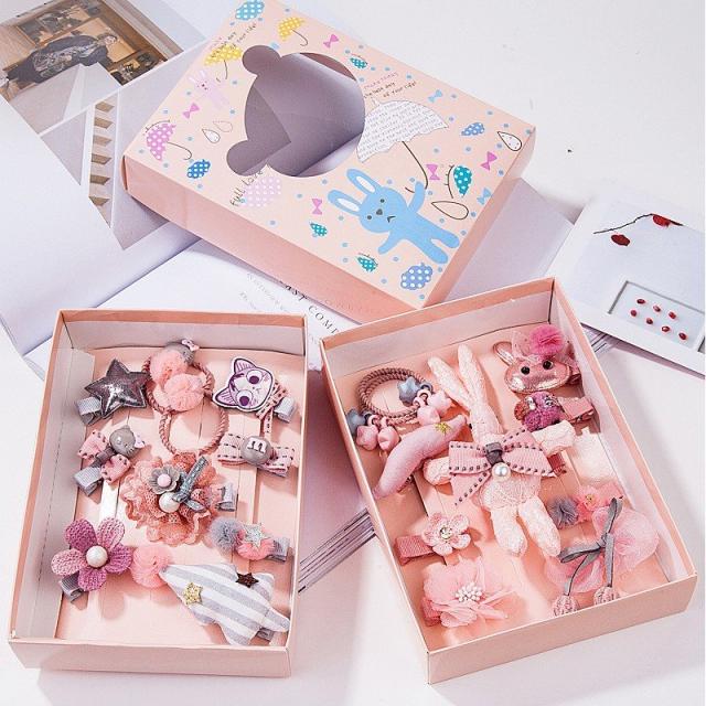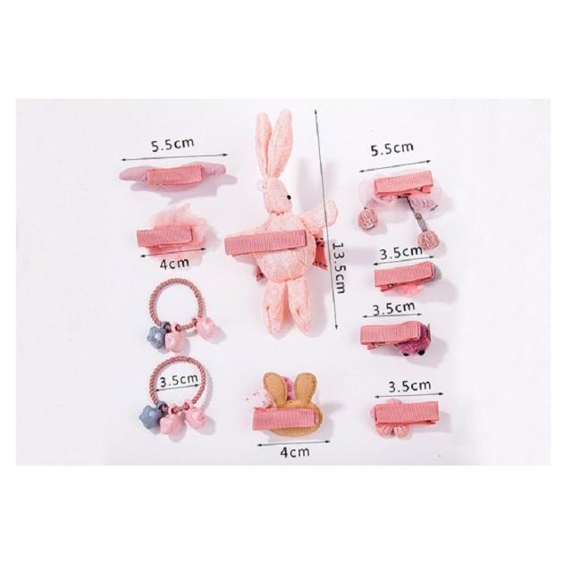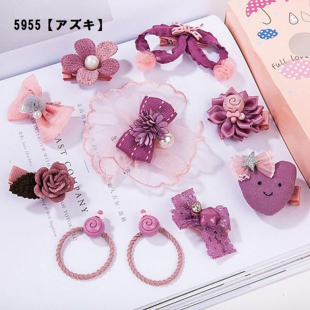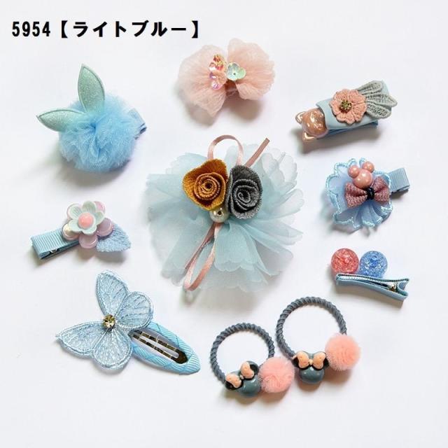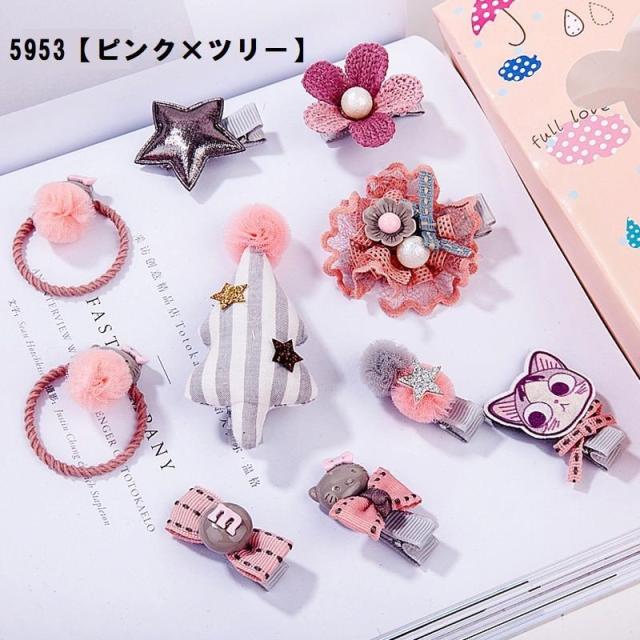 ヘアクリップ 10種セット ヘアピン ヘアゴム ヘアアクセサリー キッズ かわいい おしゃれ リボン フラワー ウサギ ピンク