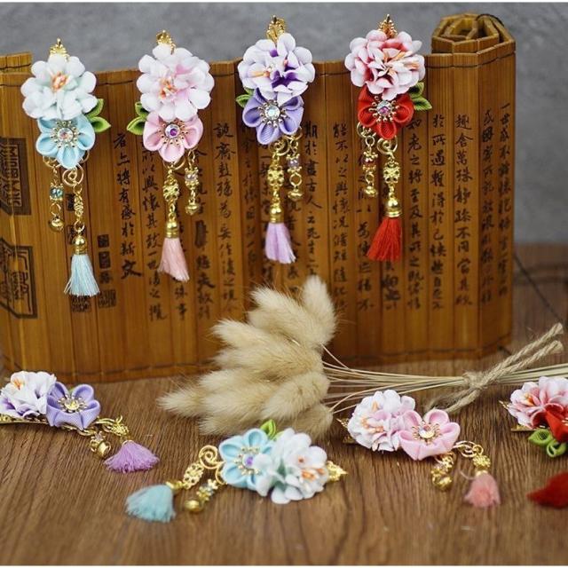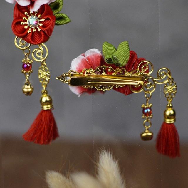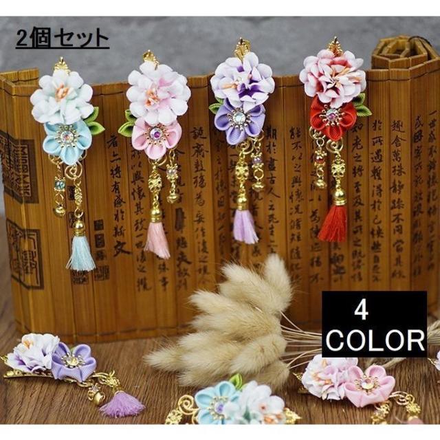 ヘアクリップ ヘアアクセサリー 2個セット 2SET 髪留め 髪飾り 子供用 女の子用 キッズ ガールズ ヘアドレス 和風 中国風 古典風 お花 フラ