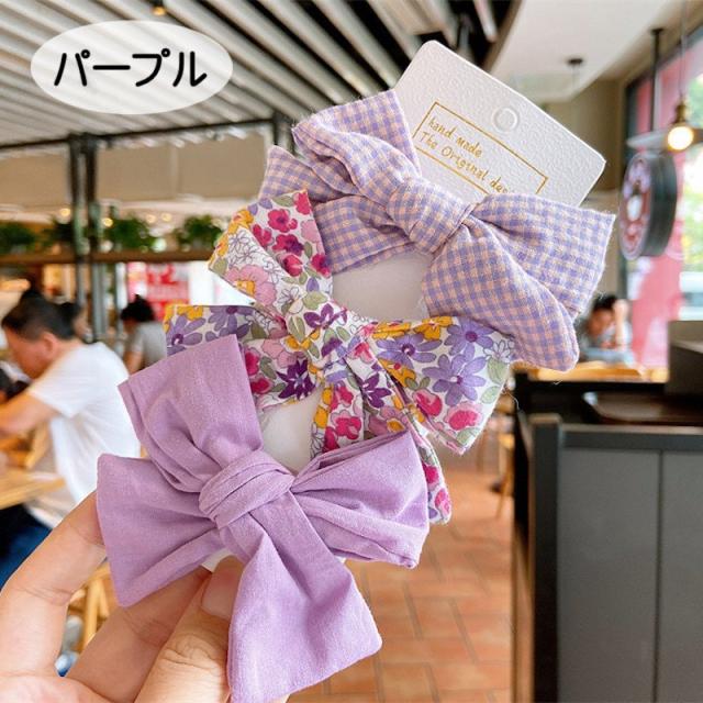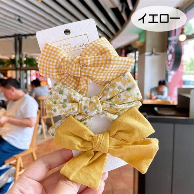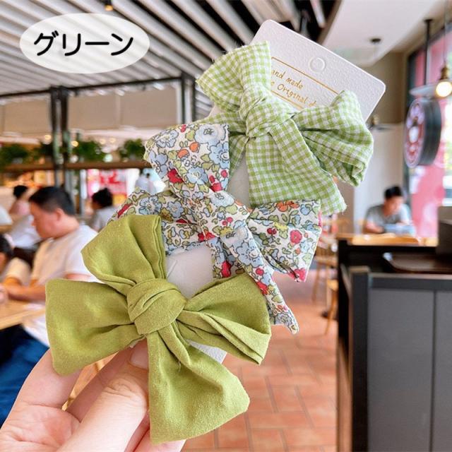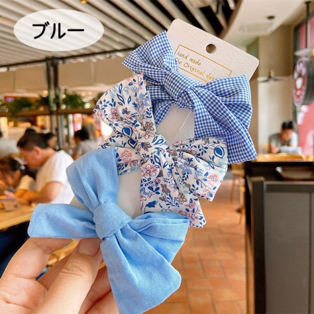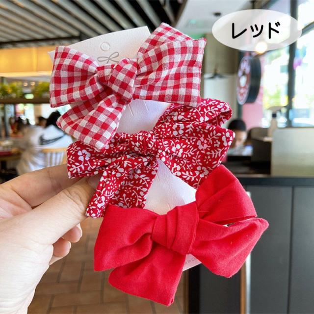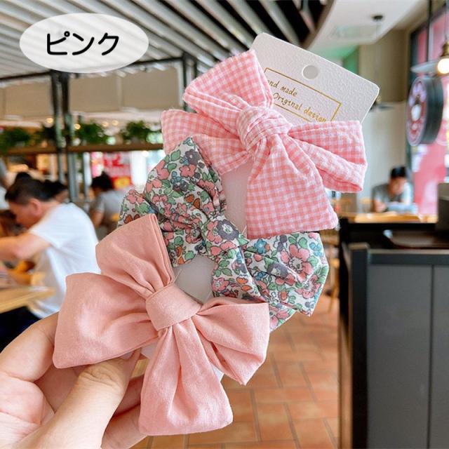 ヘアクリップ 3個セット ヘアアクセサリー キッズ 子供用 女の子 ヘアピン リボン 花柄?チェック柄 前髪 髪留め 髪飾り カラバリ豊富 可愛い キ