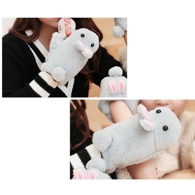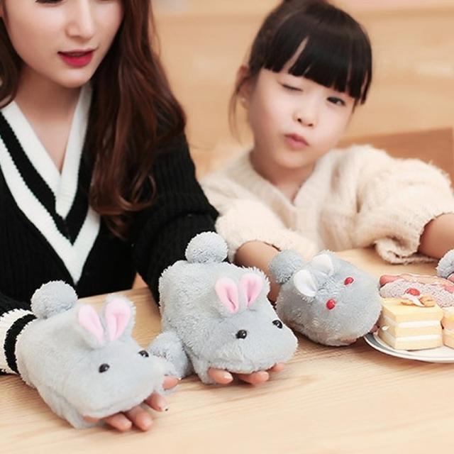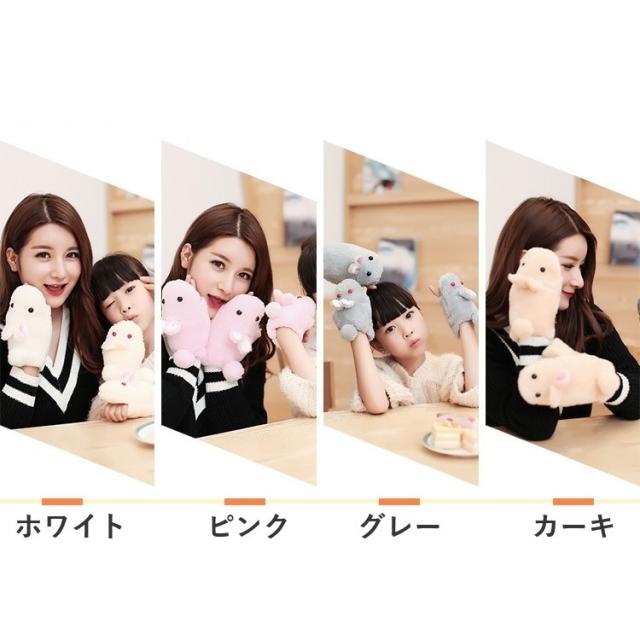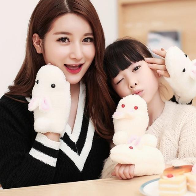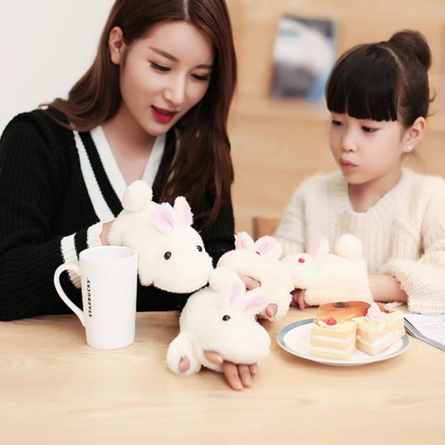 手袋 指なし ミトン ハンドウォーマー お揃い 親子 キッズ 子供 レディース 女性 ウサギ 動物 アニマル エコファー かわいい 防寒対策