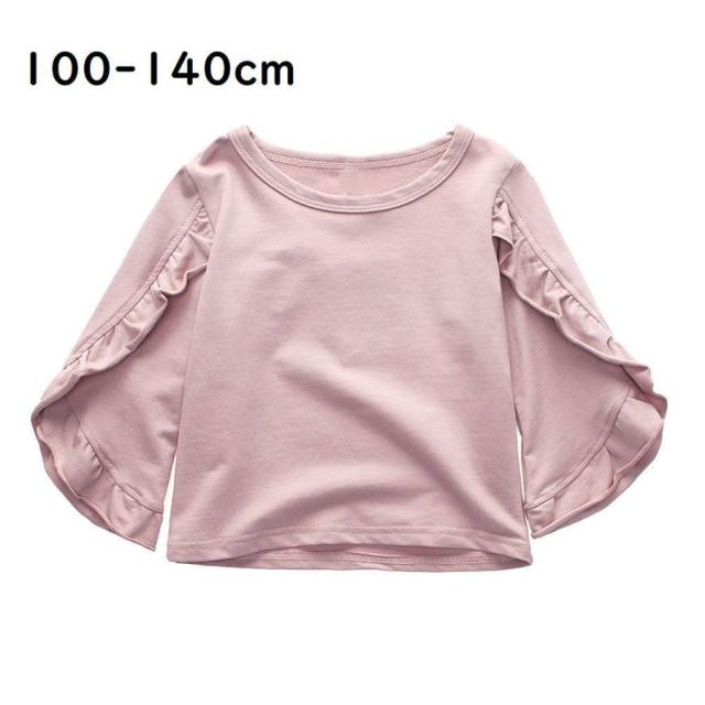 カットソー キッズ ジュニア ベビー 女の子 子供服 トップス プルオーバー ドルマン 長袖 丸首 ラウンドネック フリル 無地 ピンク シンプル か