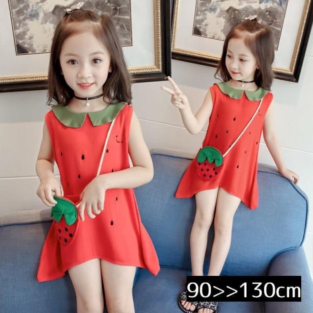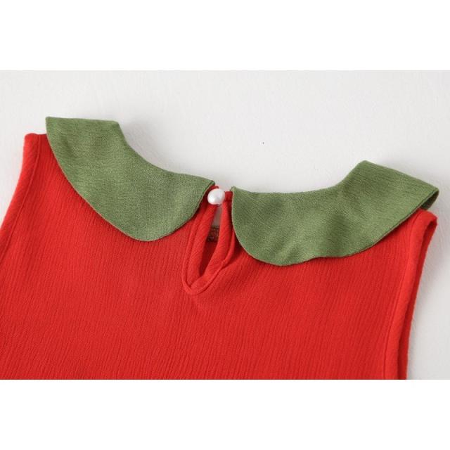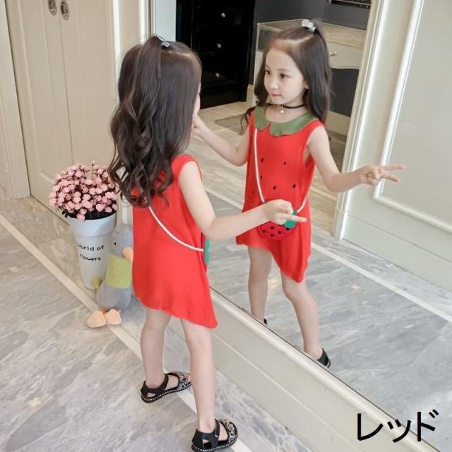 ワンピース 子供服 女の子 キッズ ベビー ガーリー ノースリーブ かわいい お出かけ 襟付き 膝丈 夏服 赤 ドレス 丸襟 膝上 子供用