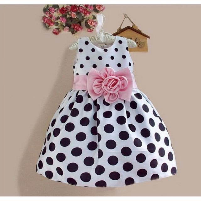 ワンピース 子供服 キッズ ジュニア ガールズ ノースリーブ ドット 水玉模様 Aライン ハイウエスト リボン お花 ベルト 夏 ふんわり ミニ丈 袖