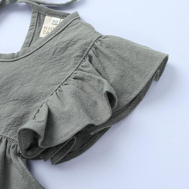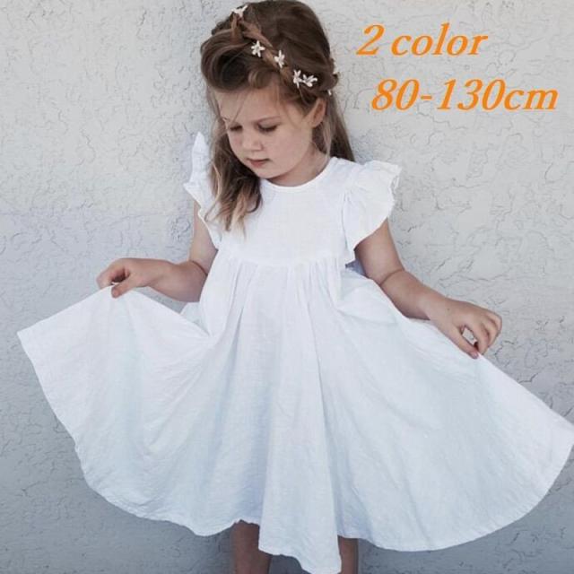 ワンピース ノースリーブ フレア ハイウエスト フリル 膝丈 無地 シンプル 子供 キッズ ベビー 女の子 ホワイト グレー お出かけシーン