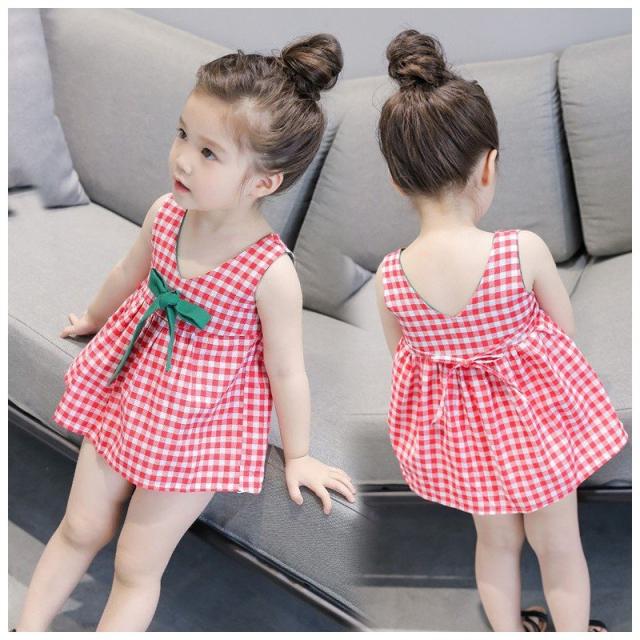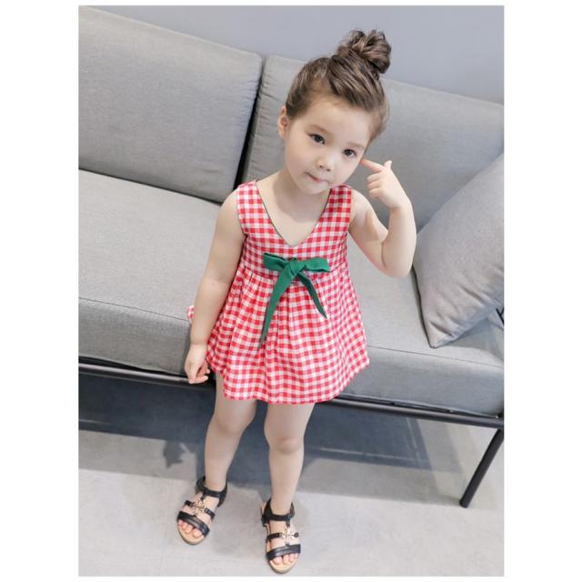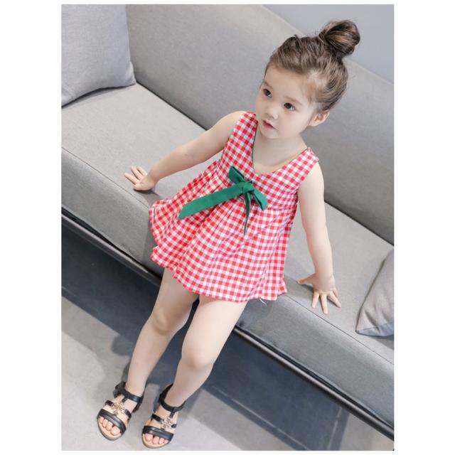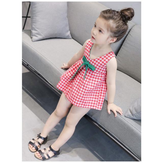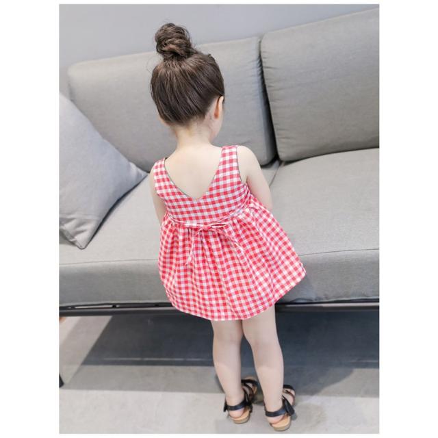 ドレスワンピース 子供服 ガールズ 女の子 子供ドレス キッズドレス 子供ドレス ワンピース ギンガムチェック リボン ノースリーブ 7号 9号 11