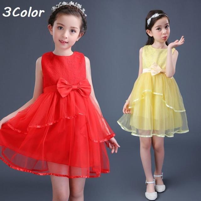 ワンピース ドレス 女の子 キッズ ジュニア 夏 赤 上品 膝丈 イエロー かわいい エレガント お呼ばれ パーティー 子供 肩出し 可愛い きれいめ