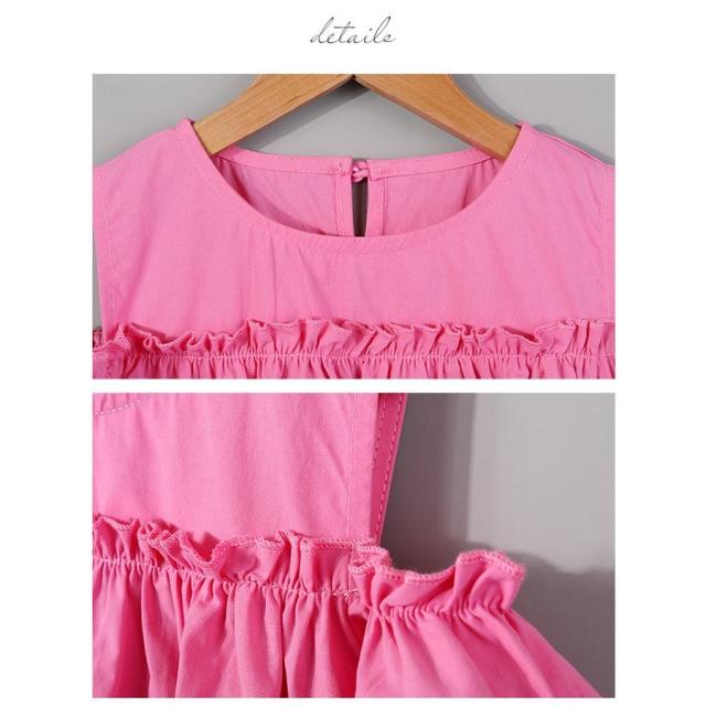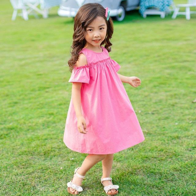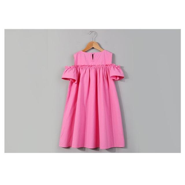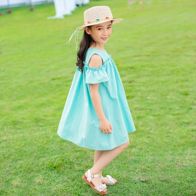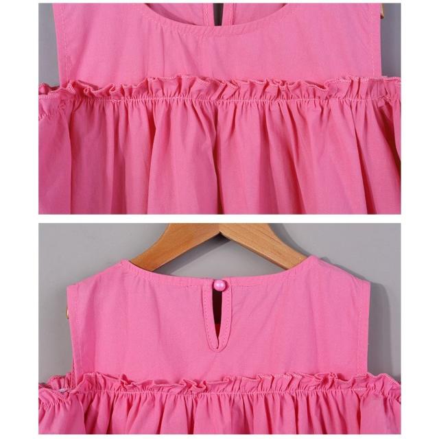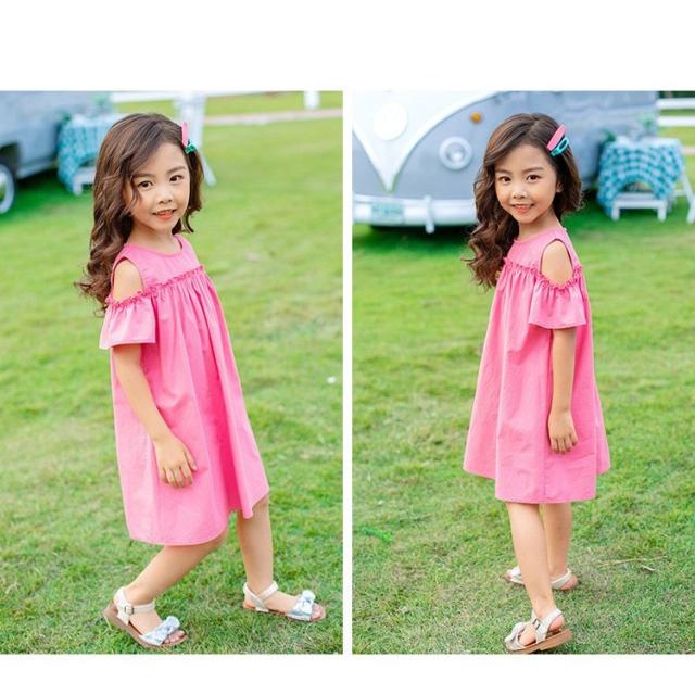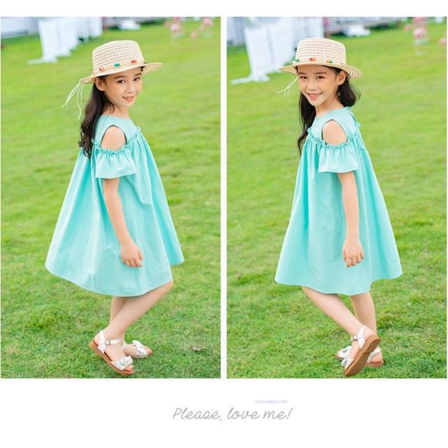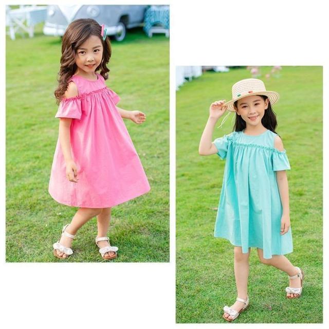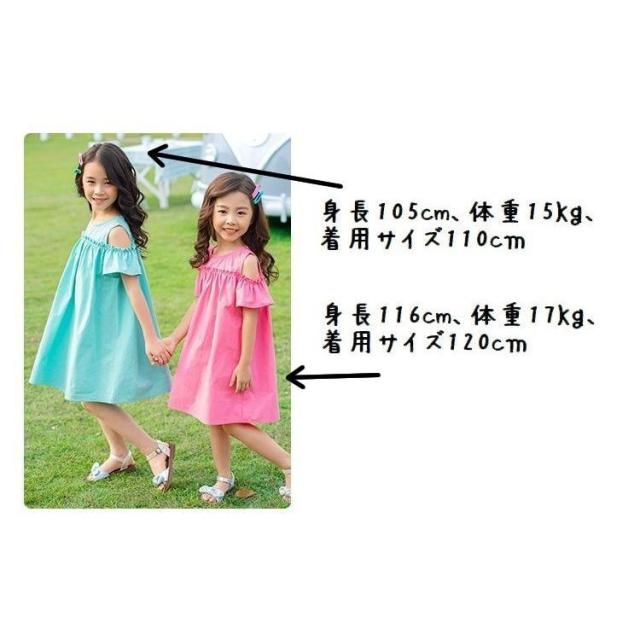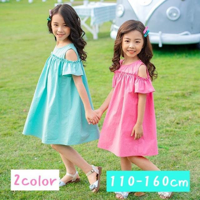 ワンピース 子供服 半袖 春夏 女の子 キッズワンピース 薄手 肩出し 無地 シンプル チュニック おしゃれ かわいい 膝丈 胸切り替え Aライン 1