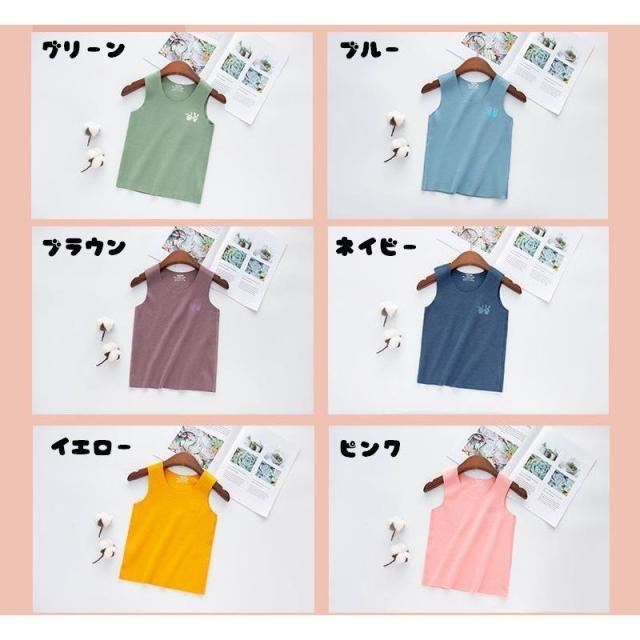 タンクトップ トップス 子供服 ノースリーブ ラウンドネック 薄手 シンプル 無地 ワンポイントロゴ ウサギ 夏 ガール 女の子 キッズ ジュニア
