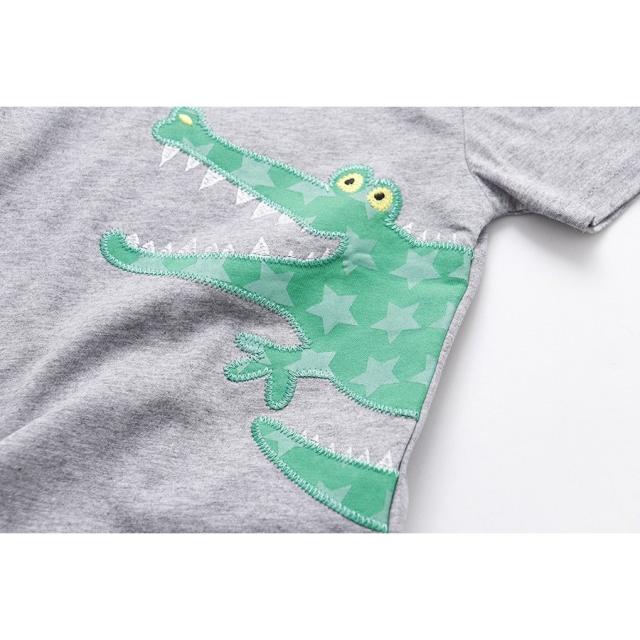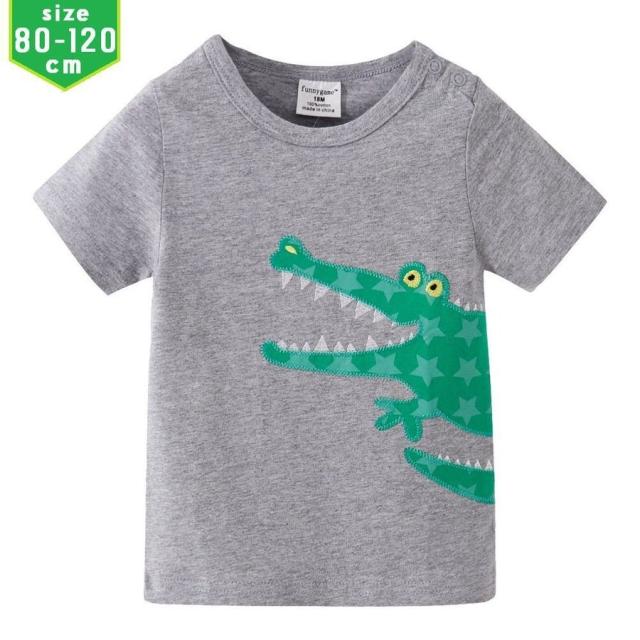 Tシャツ カットソー 半袖 キッズ ベビー 子供服 ラウンドネック 肩ボタン トップス 通園 通学 アップリケ 刺繍 星柄 ワニ わに 動物 アニマル