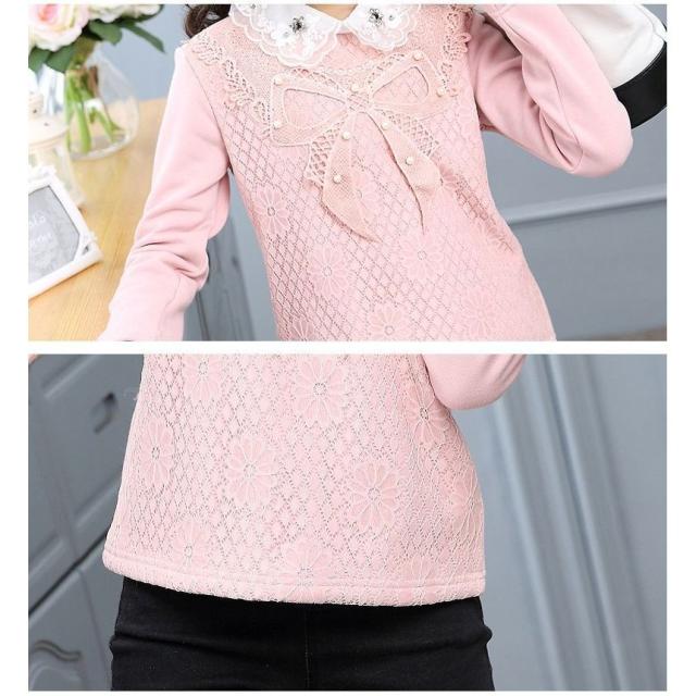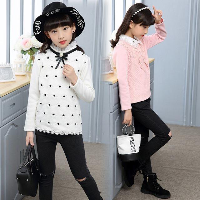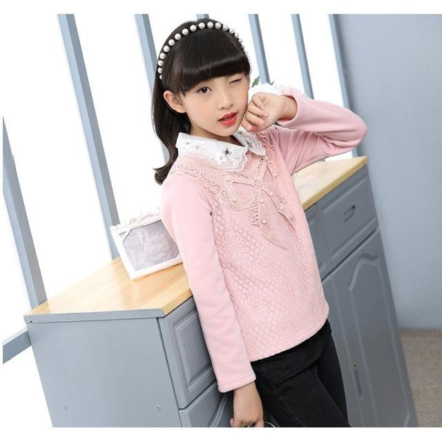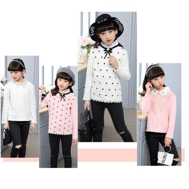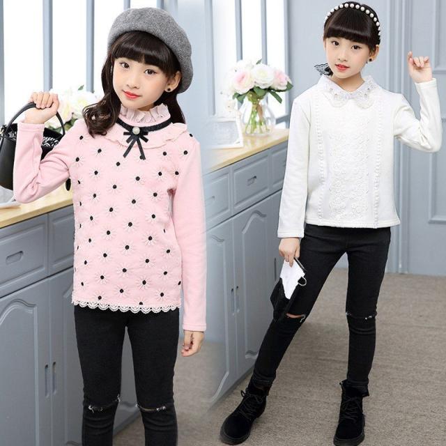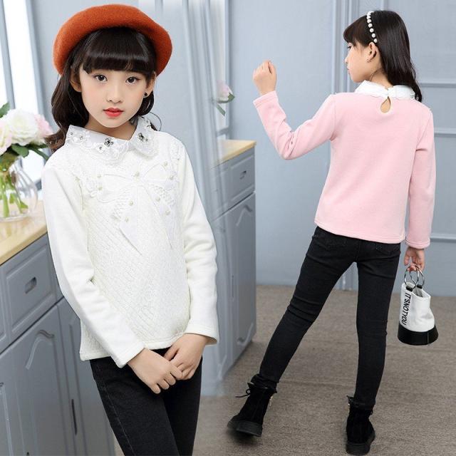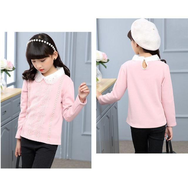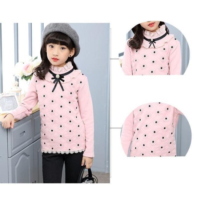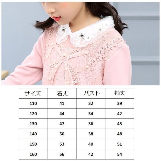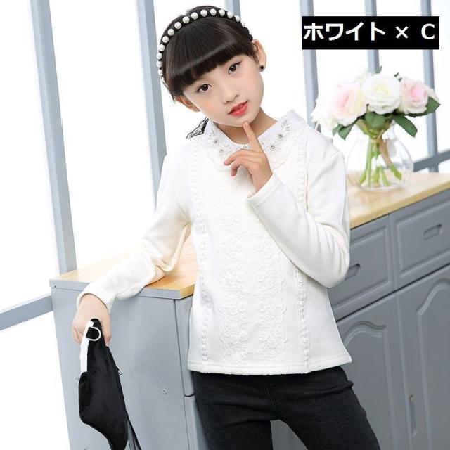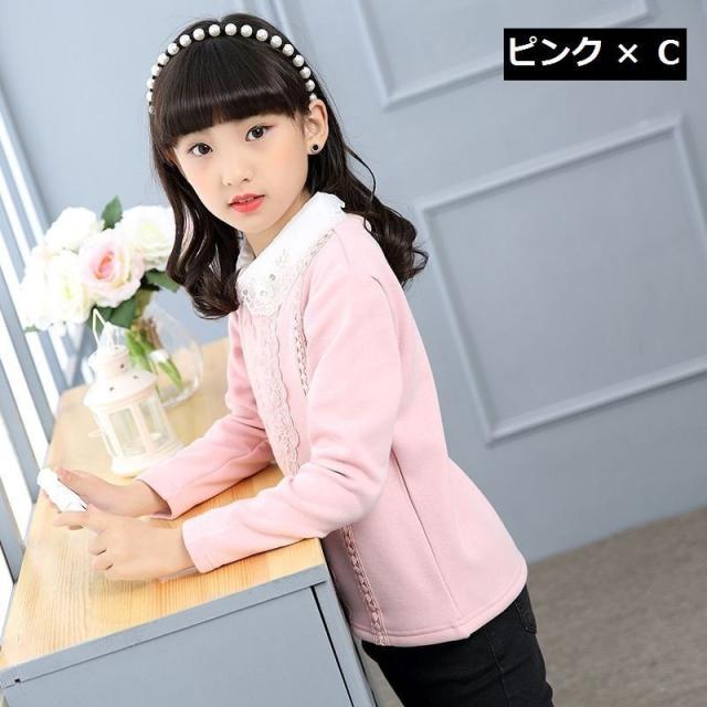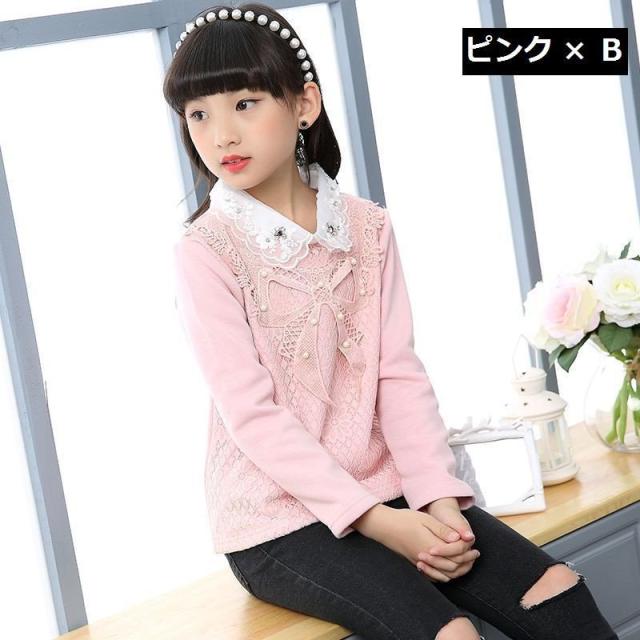 カットソー プルオーバー 長袖 トップス キッズ ジュニア 女の子 子供服 ピンク 白 花 刺繍 リボン ネックフリル 襟付き