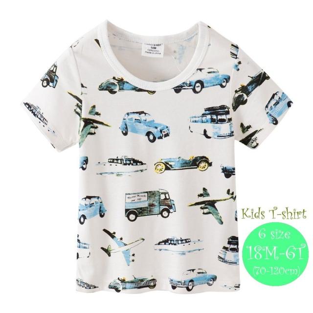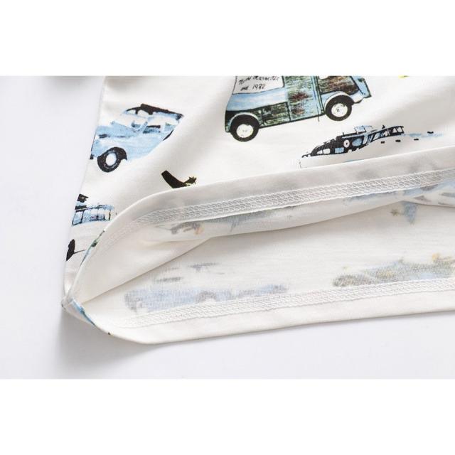 Tシャツ カットソー キッズ ベビー 男の子 女の子 子供用 トップス 子供服 半袖 ラウンドネック 丸首 プリント 車 カジュアル スポーティー か