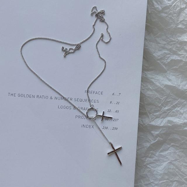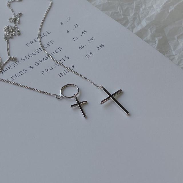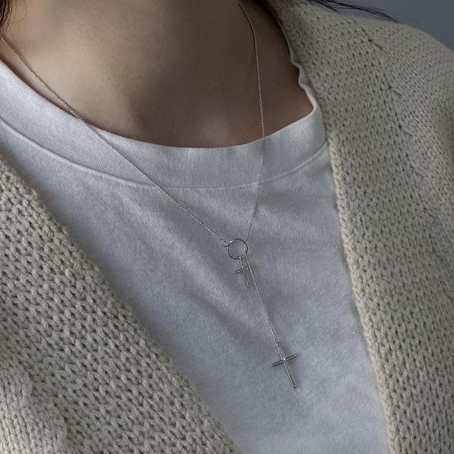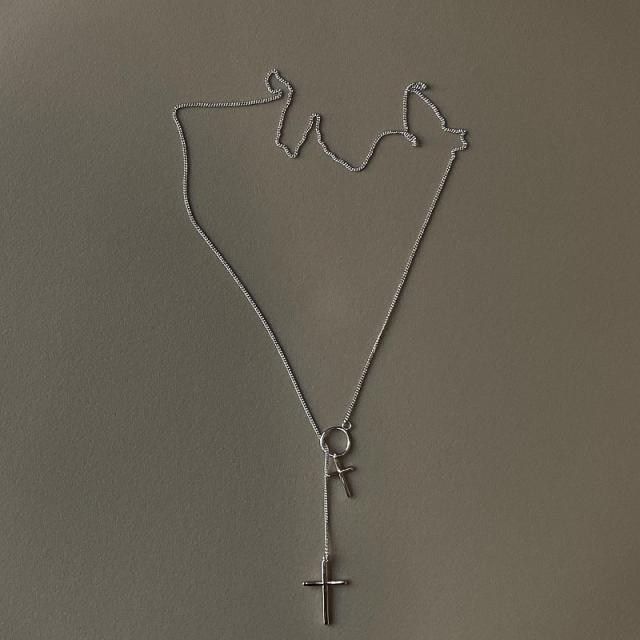 ネックレス クロス 十字架 リング チェーン ロング アクセサリー ファッション小物 ジュエリー レディース シンプル クール おしゃれ シルバーカラ