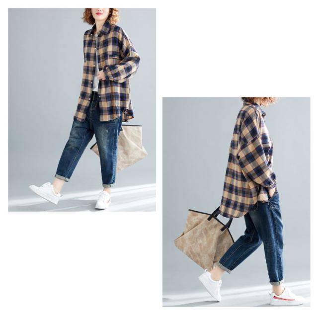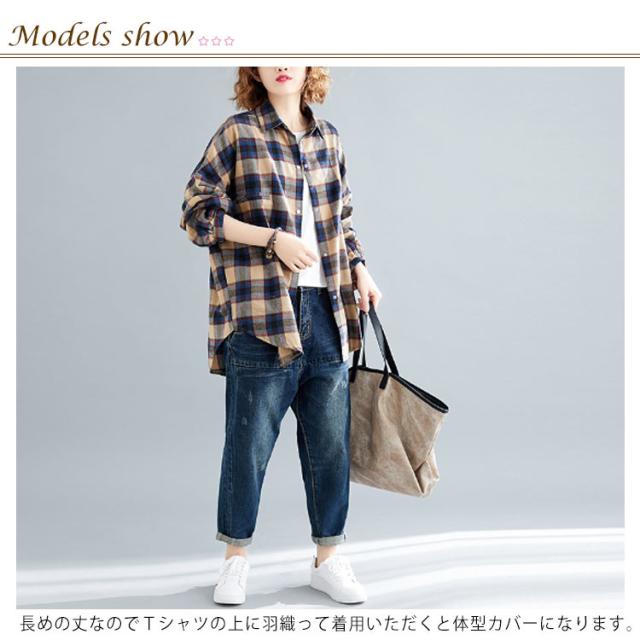 (送料無料)チェックシャツ レディース 長袖 シャツ チュニック チェック柄 ネルシャツ トップス 羽織り ロングシャツ ボタン 大きいサイズ ゆったり おしゃれ カジュアル 大人 可愛い シンプル 重ね着 きれいめ 大人 シンプル かわいい