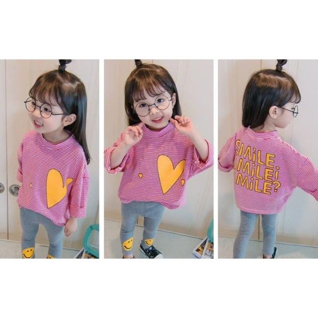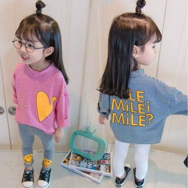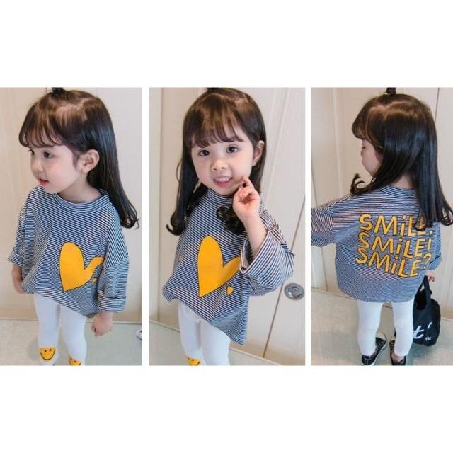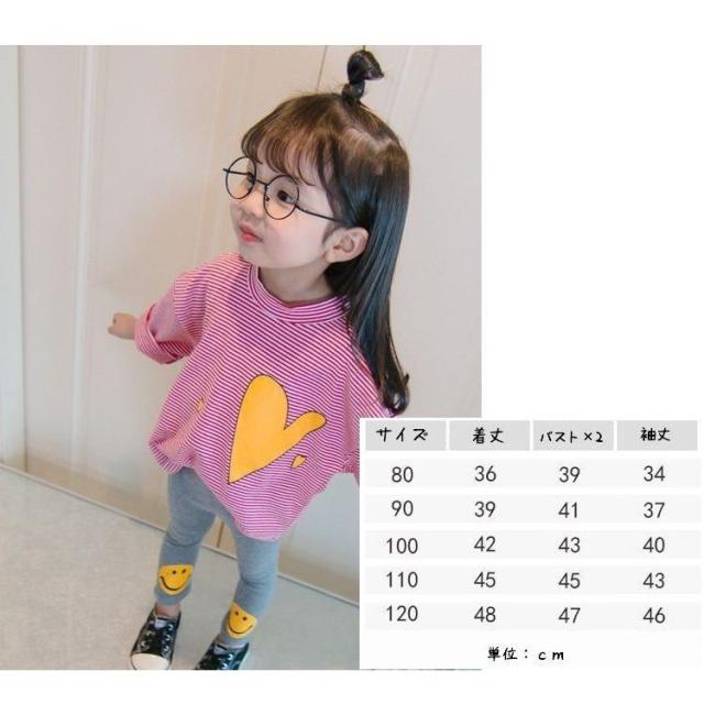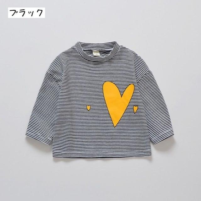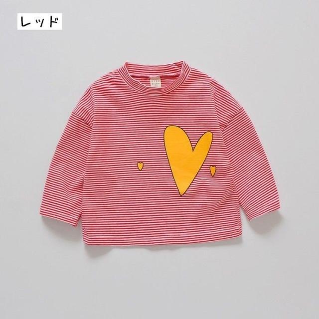 長袖Tシャツ 子供服 こども服 ボーダー ハート プリント ベビー Tシャツ 長袖 トップス キッズ ラウンドネック プルオーバー 女の子 80 90