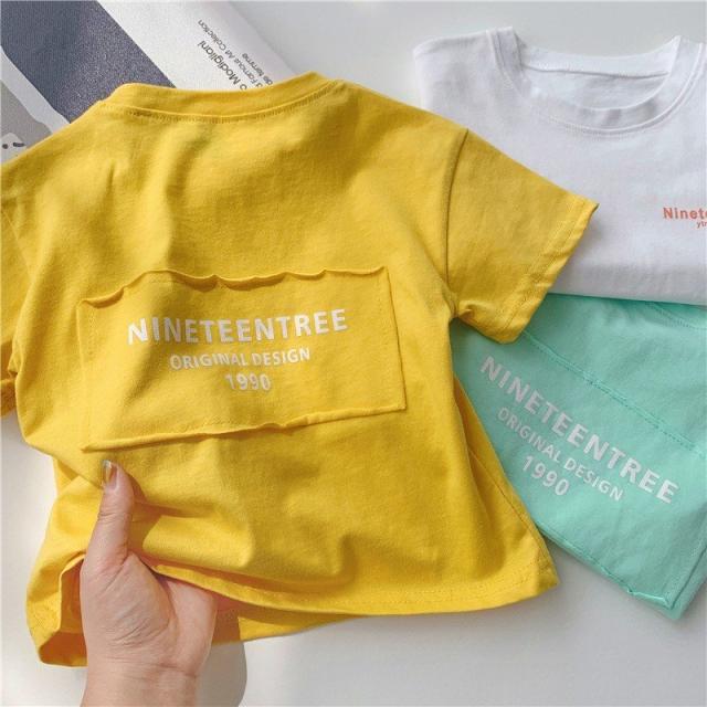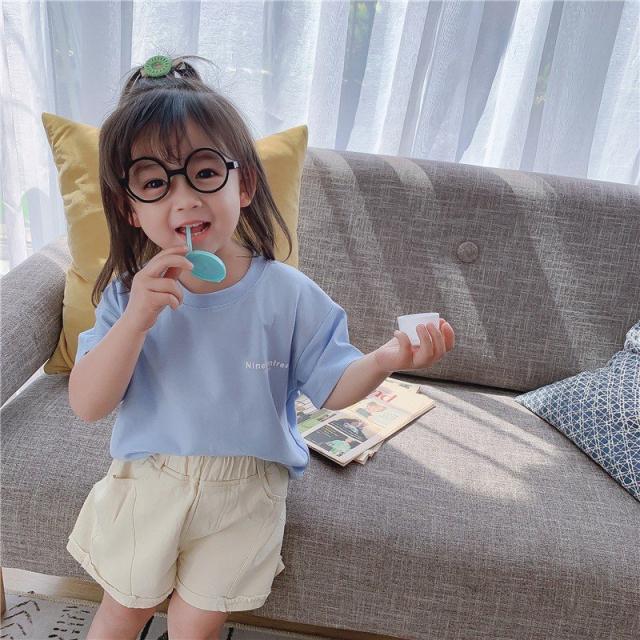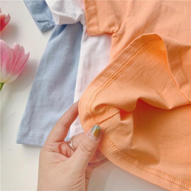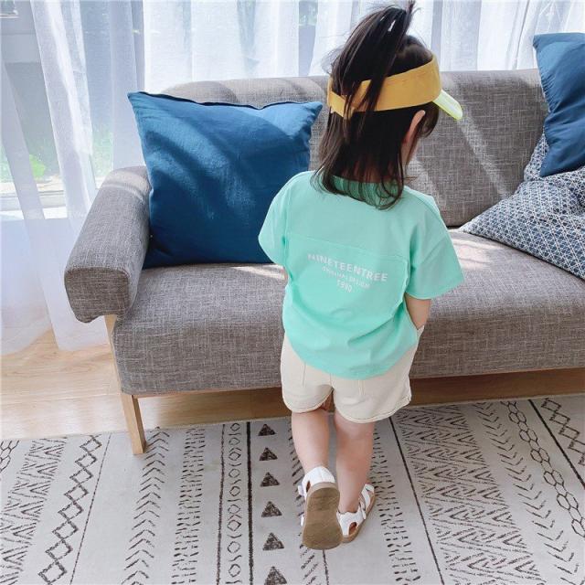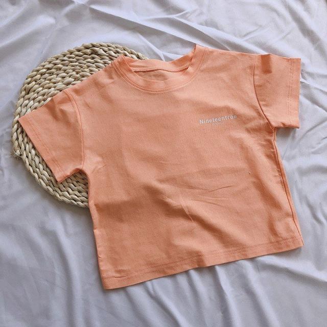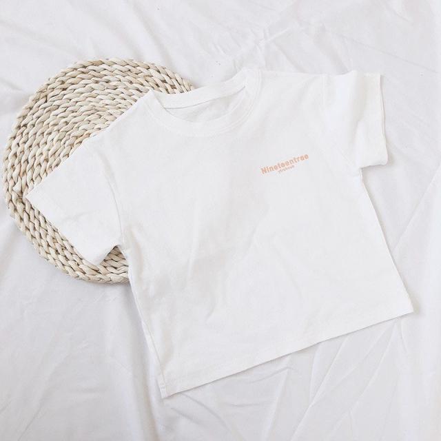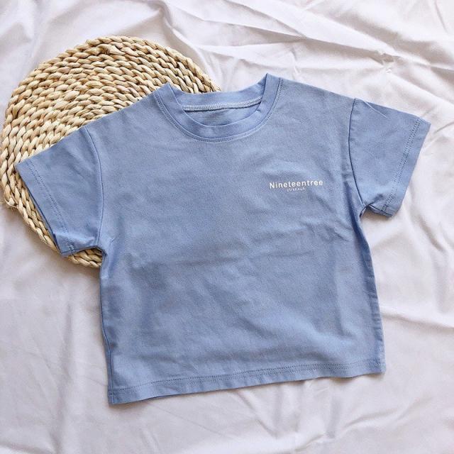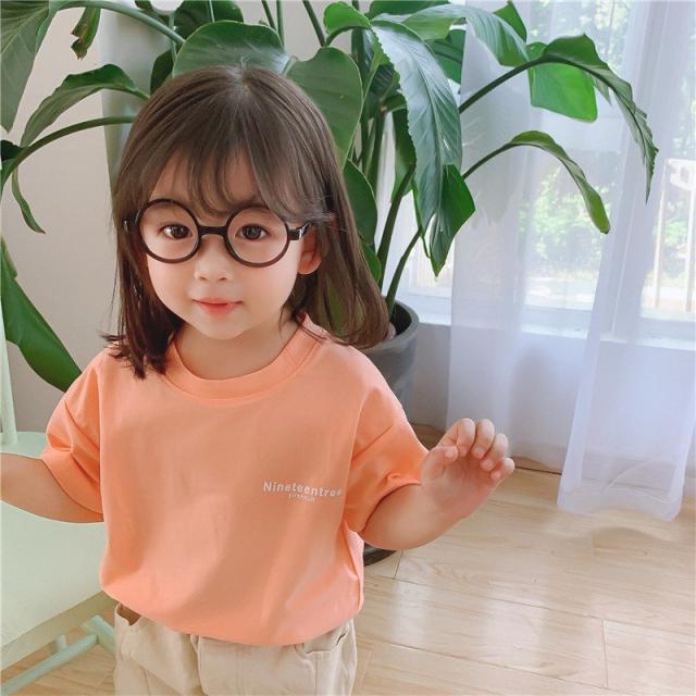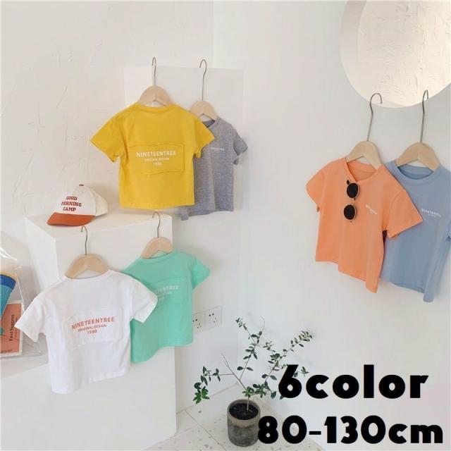 Tシャツ カットソー 半袖 キッズ ベビー 子供 女の子 男の子 パステル 単色 英字 プリント ロゴ かわいい おしゃれ ラウンドネック シンプル