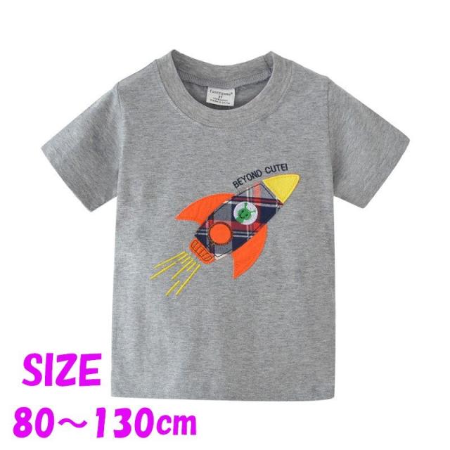 Tシャツ カットソー ラウンドネック 半袖 キッズ 男の子 女の子 プリント ロケット 子ども服 夏服 かわいい 普段着 デイリー