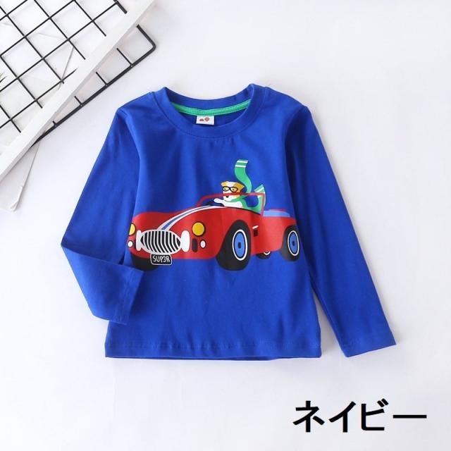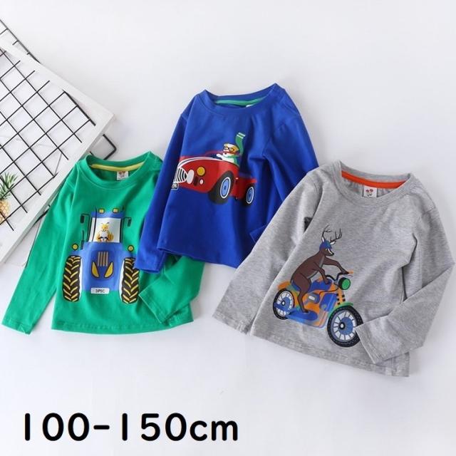 カットソー 長袖 トップス キッズ ジュニア 子供用 男の子 長袖Tシャツ ロンT プルオーバー 乗り物 動物 プリント おしゃれ かわいい クルーネ