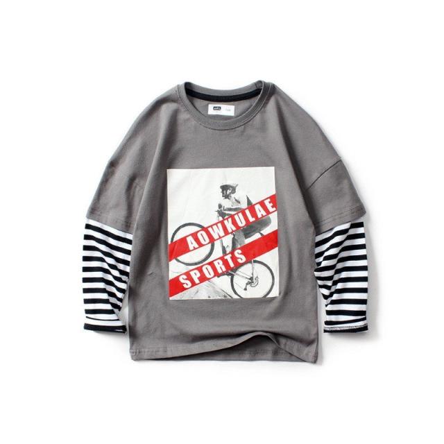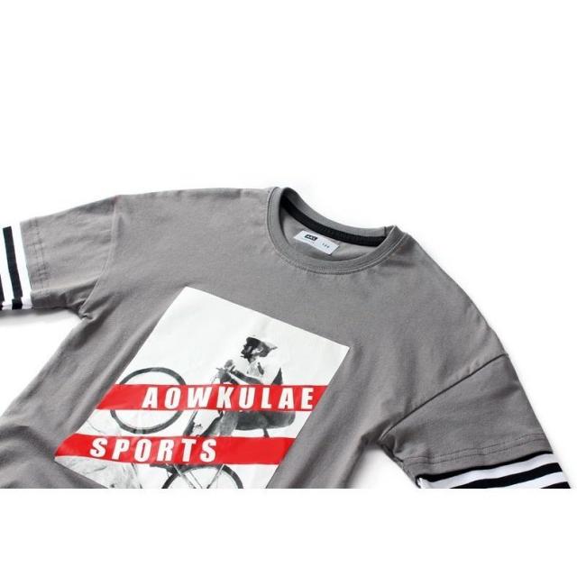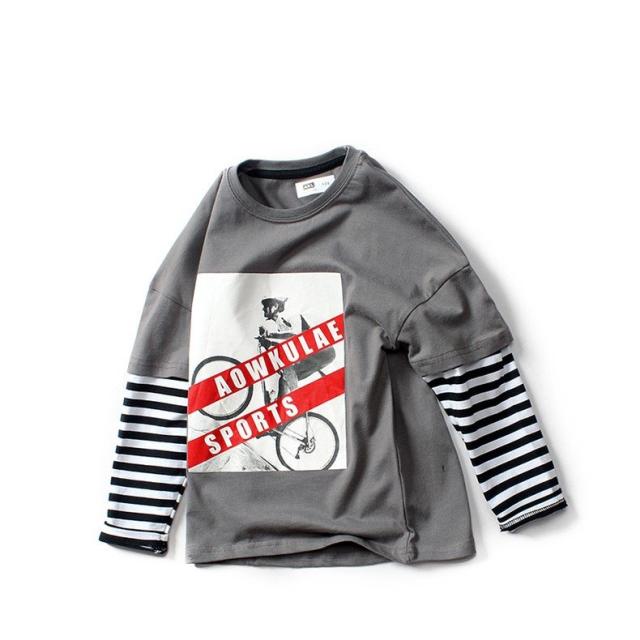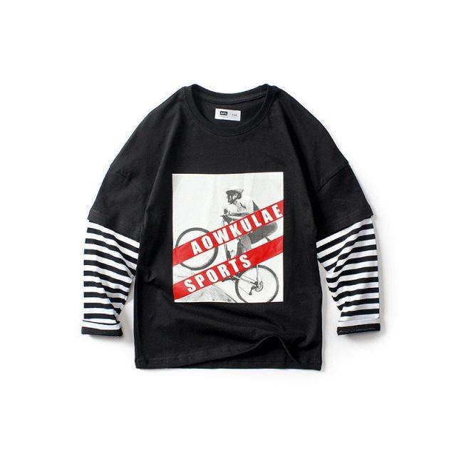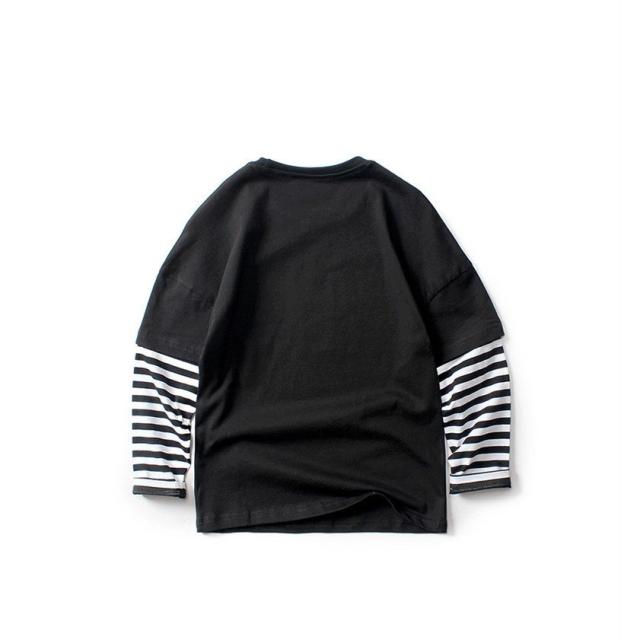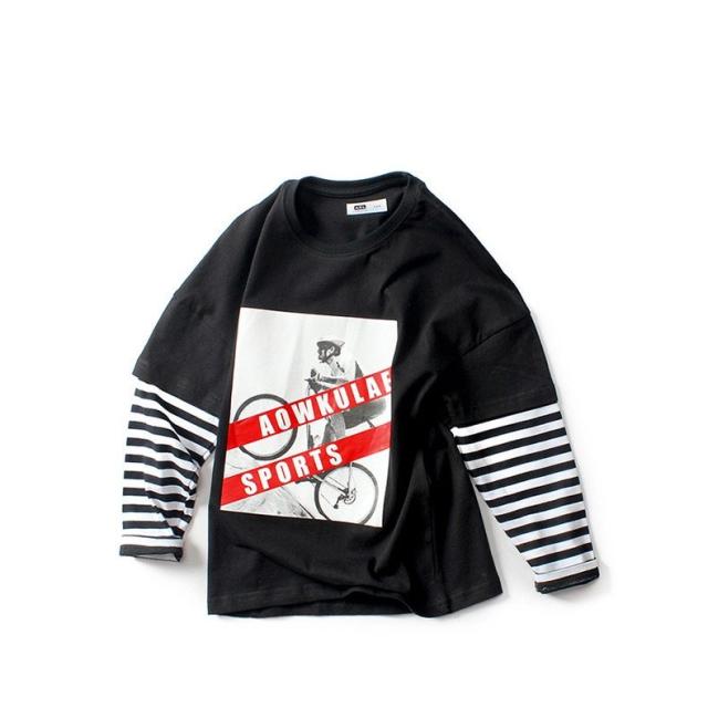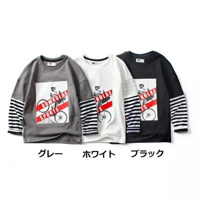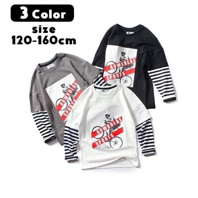長袖Tシャツ カットソー キッズ ジュニア 子供 男の子 女の子 重ね着風 ボーダー ロング プリント ロゴ 英字 ラウンドネック スポーツ