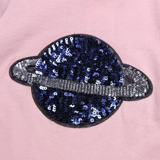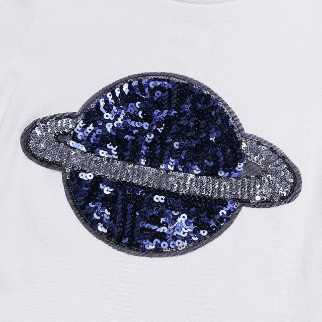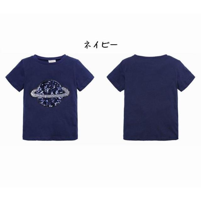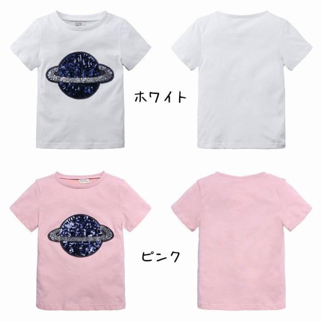 半袖Tシャツ キッズ ベビー 子供服 こども服 土星 惑星 スパンコール Tシャツ 半袖 トップス ラウンドネック プルオーバー おしゃれ 男の子 女