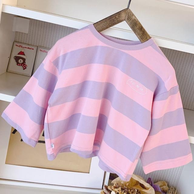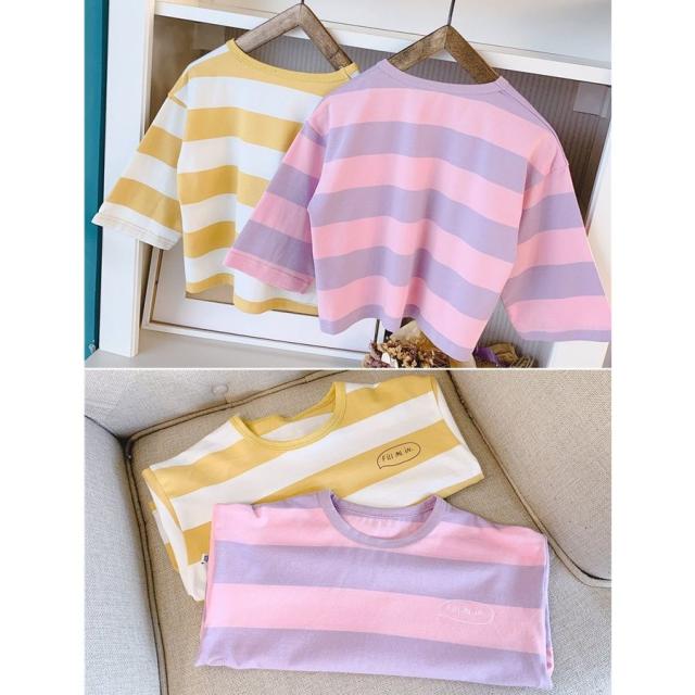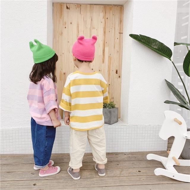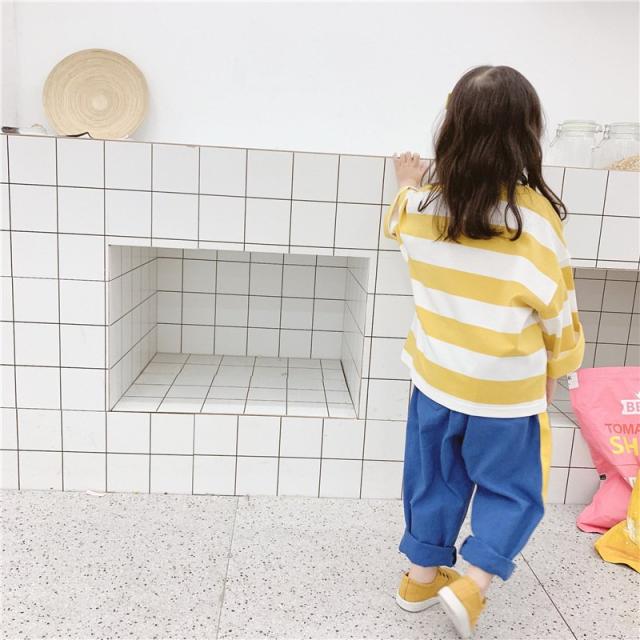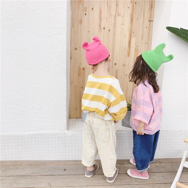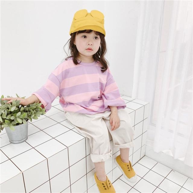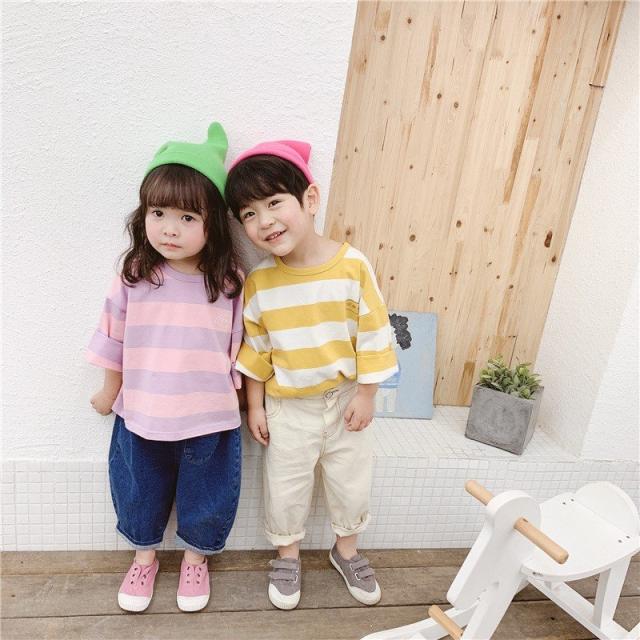 Tシャツ 長袖 ビッグシルエット 子供服 キッズ ベビー ドロップショルダー オーバーサイズ カットソー 太めボーダー トップス 丸首 ラウンドネック