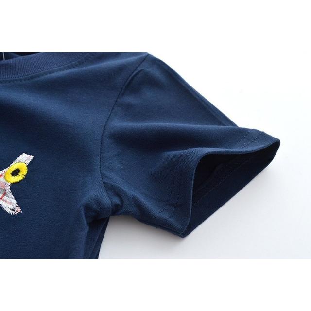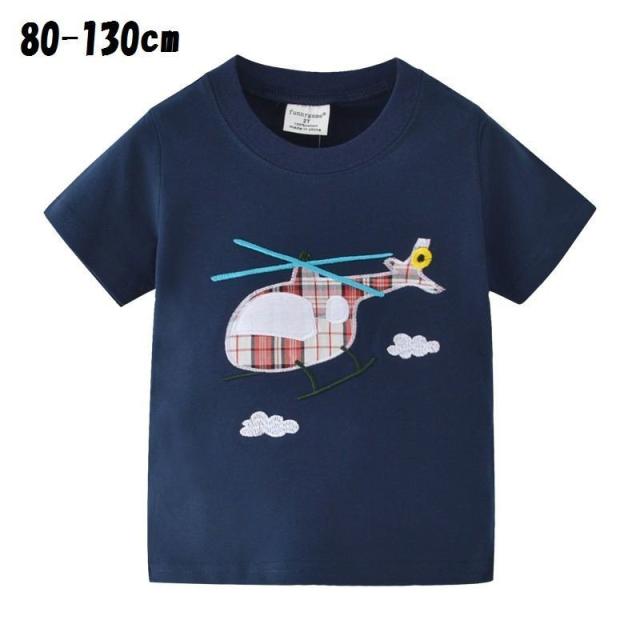 Tシャツ キッズ 男の子 女の子 半袖 トップス クルーネック ヘリコプター アップリケ 刺繍 カジュアル かわいい 子供服