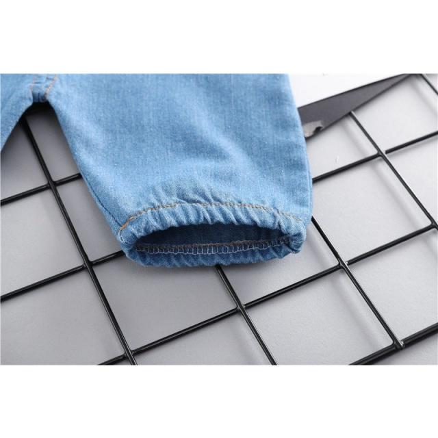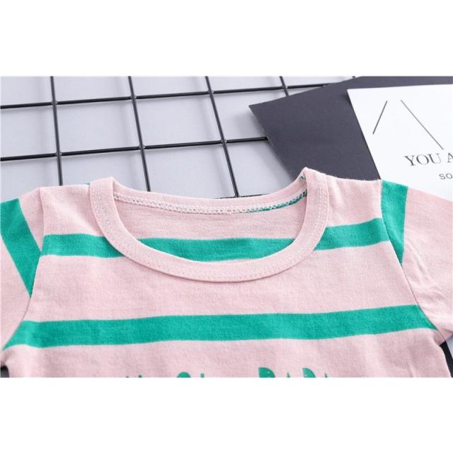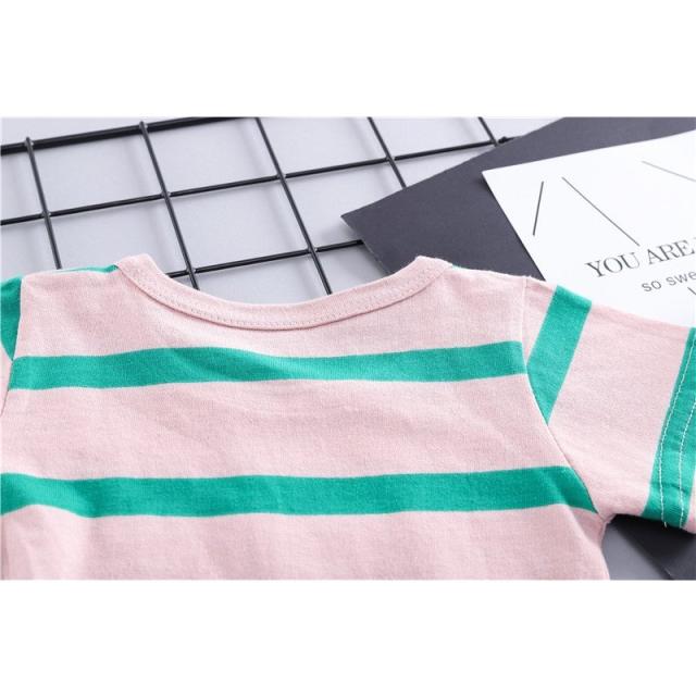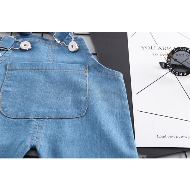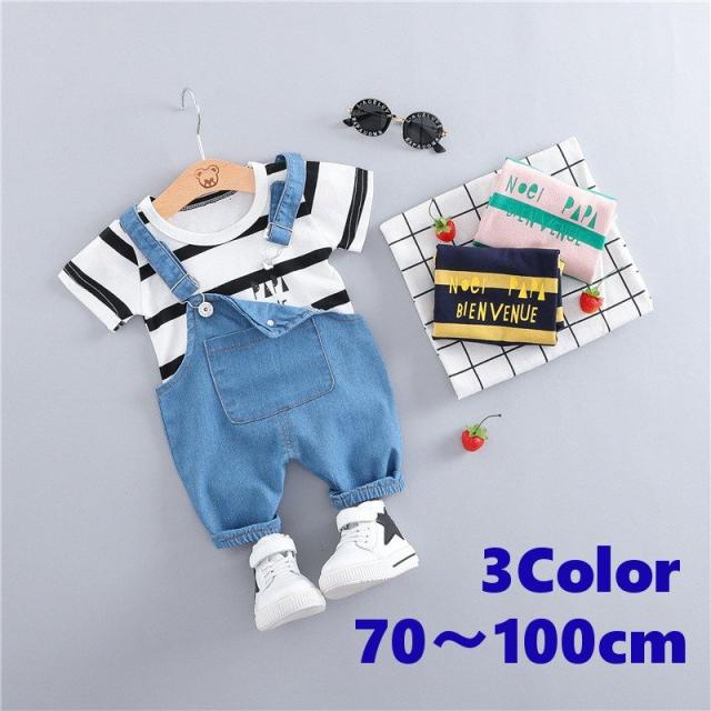 セット服 ツーピース ベビー 2点セット 半袖 丸襟 ボーダー Tシャツ デニム オーバーオール 前ポケット付き 肩紐調整可能 子供服 かわいい お出