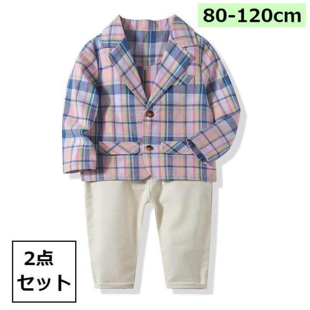 セットアップ キッズ 2点セット テーラードジャケット アウター パンツ 長ズボン 格子柄 チェック柄 かわいい おしゃれ 上品 きれいめ お呼ばれ
