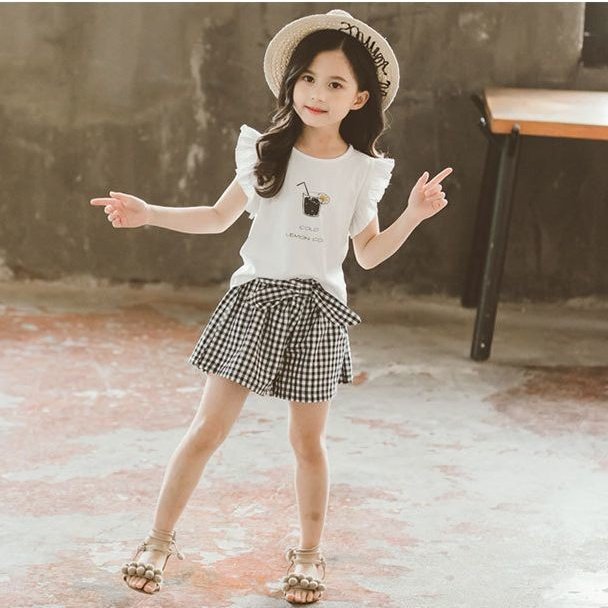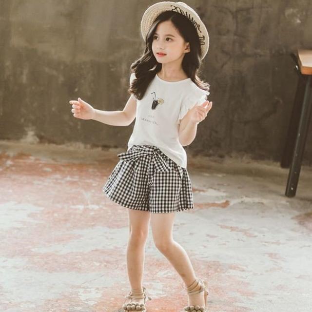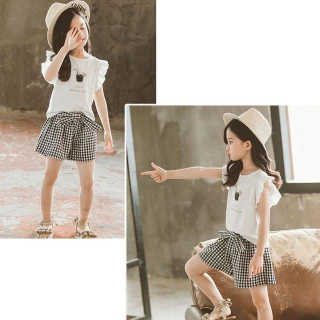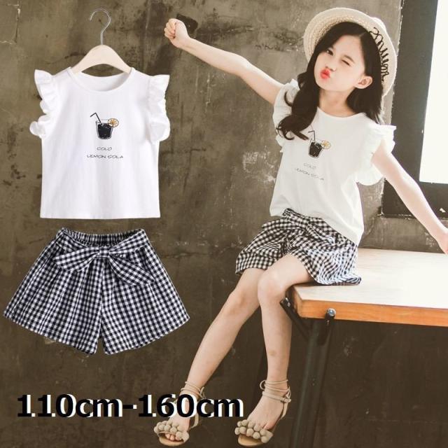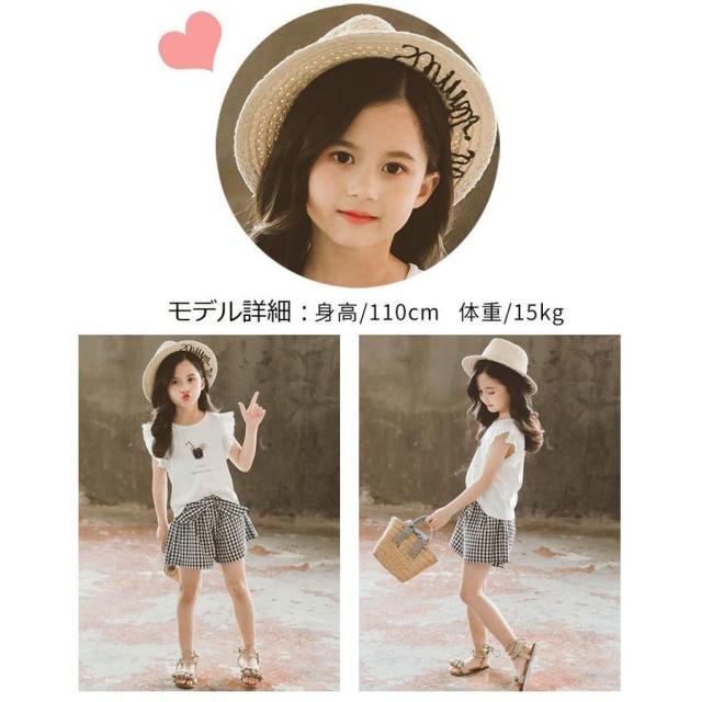 セットアップ 2点セット ツーピース キッズ ジュニア フリル シャツ パンツ ギンガムチェック おしゃれ かわいい リボン 110cm 120cm