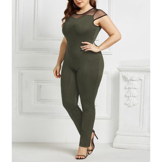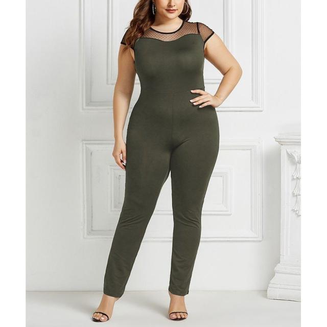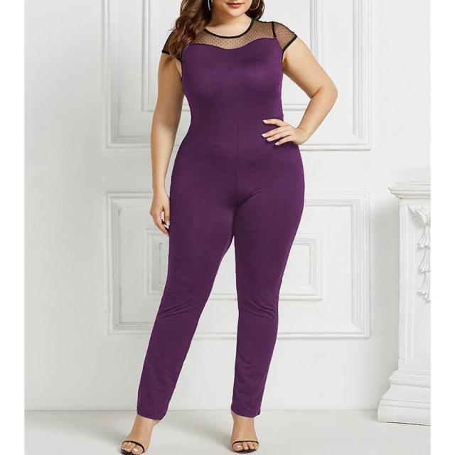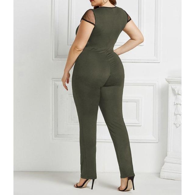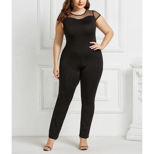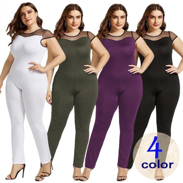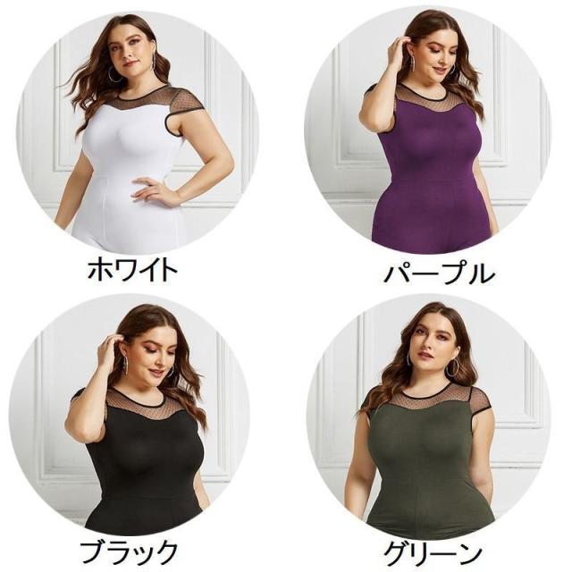 オールインワン 半袖 シアースリーブ 切り替え ロングパンツ 長ズボン ジャンプスーツ おしゃれ シンプル つなぎ 部分シースルー 透け感 ストレッチ