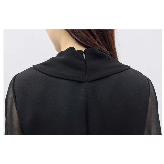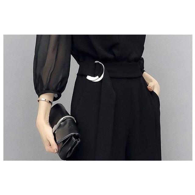 オールインワン オールインワンドレス パンツドレス レディース 7分袖 ロングパンツ 長ズボン Vネック シースルー 切り替えデザイン シフォン切り替