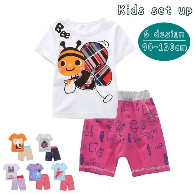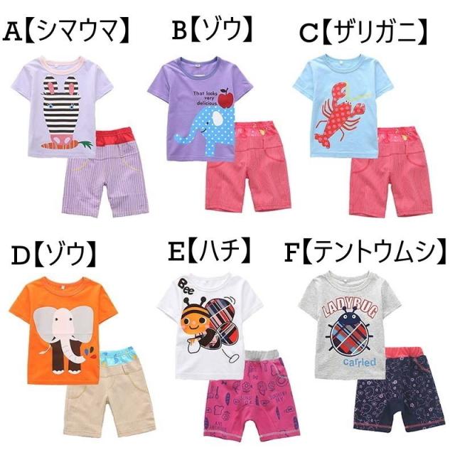 セットアップ 上下セット Tシャツ 子供用 キッズ 半袖 半ズボン ハーフパンツ モンキーパンツ 動物プリント アニマルプリント かわいい キュート