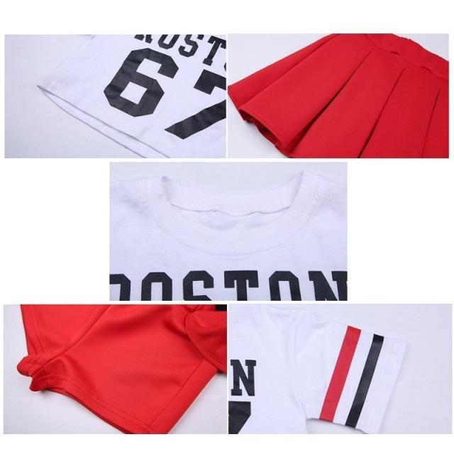 セットアップ 上下2点セット 子供 男女 Tシャツ ラウンドネック 丸首 ショート丈 ミニスカート ボックスプリーツ ショートパンツ スポーティ スト