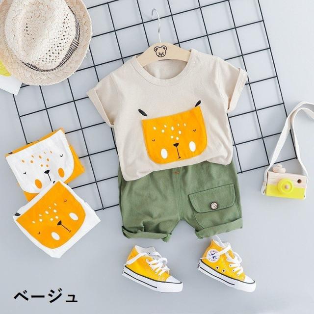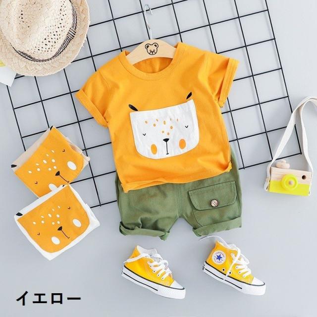 セットアップ 上下セット Tシャツ カットソー 半袖 ショートパンツ 短パン ベビー キッズ 子供 男の子 女の子 イラスト プリント 犬 イヌ ポケ