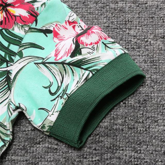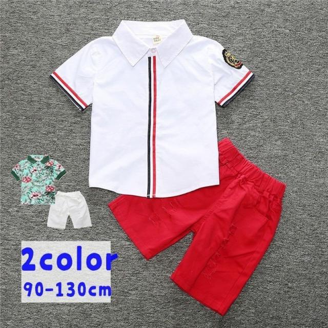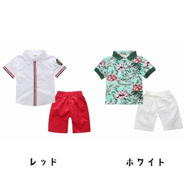 セットアップ 子供服 キッズ ベビー 男の子 上下 2点セット 半袖 短パン ハーフパンツ ポロシャツ おしゃれ ボタニカル柄 ワッペン トップス ボ